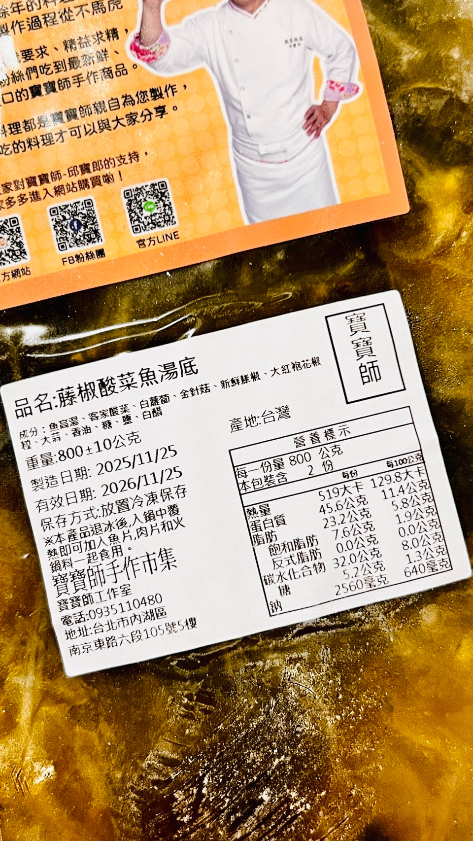 Chef Chiu Soup Base for Sichuan Boiled Fish with Pickled Cabbage 800g/pk 國宴型男主廚邱寶郎 野生藤椒酸菜魚湯底 800g/包