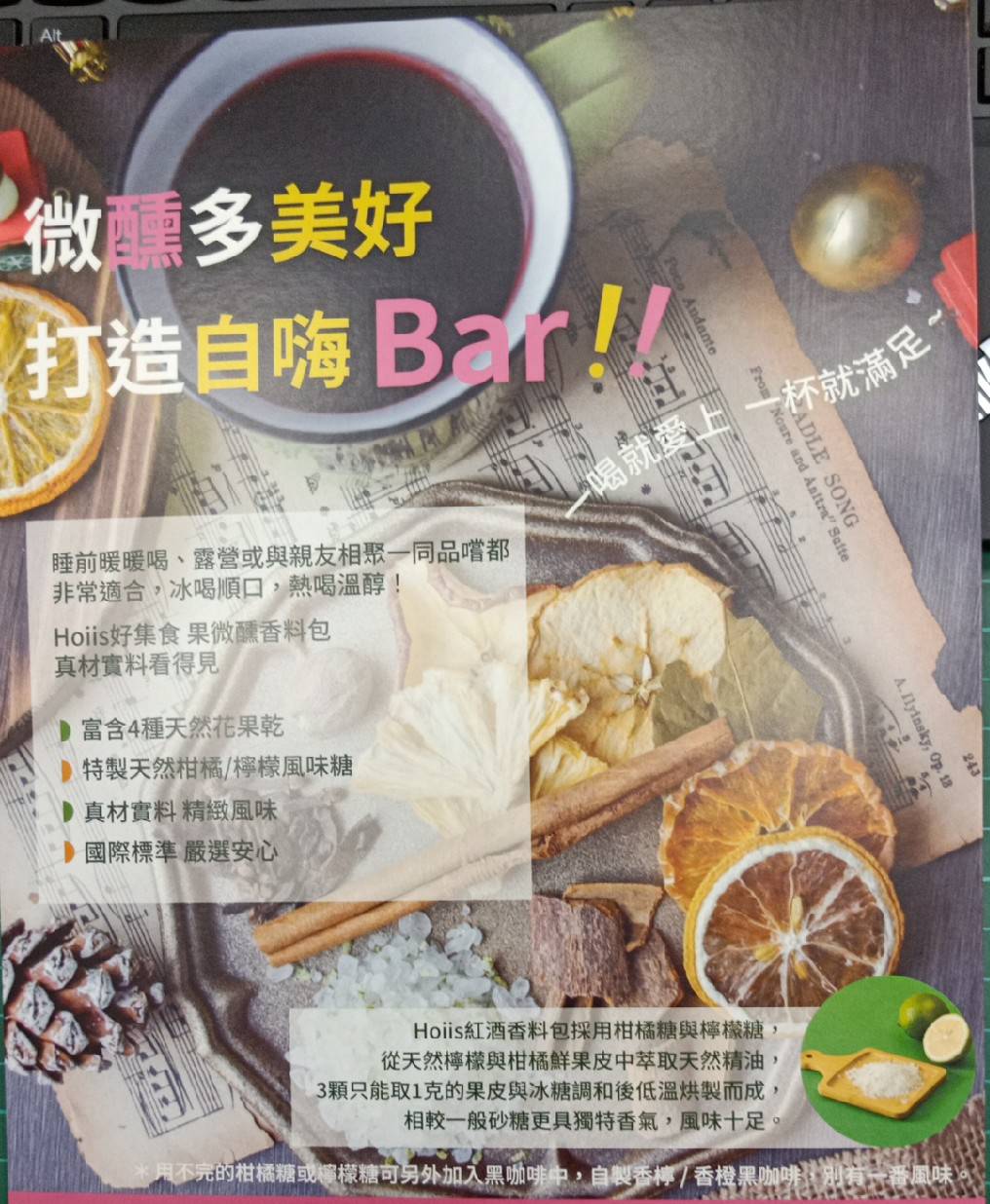 💕除了熱紅酒的經典香料之外,每種組合都加入了風乾超過30小時以上的果乾, 以及三顆才能取下1克的獨家柑橘&檸檬鮮果果皮,用其豐富的營養成分和精油再和冰糖混合之後再低溫乾燥,因而冰糖有著香濃的柑橘檸檬果香。再加入紅酒, 大約悶煮滾8-10分鐘即可享用, 濃濃的肉桂香和果酸熬煮後,與紅葡萄酒交融,形成溫潤獨特的風味。