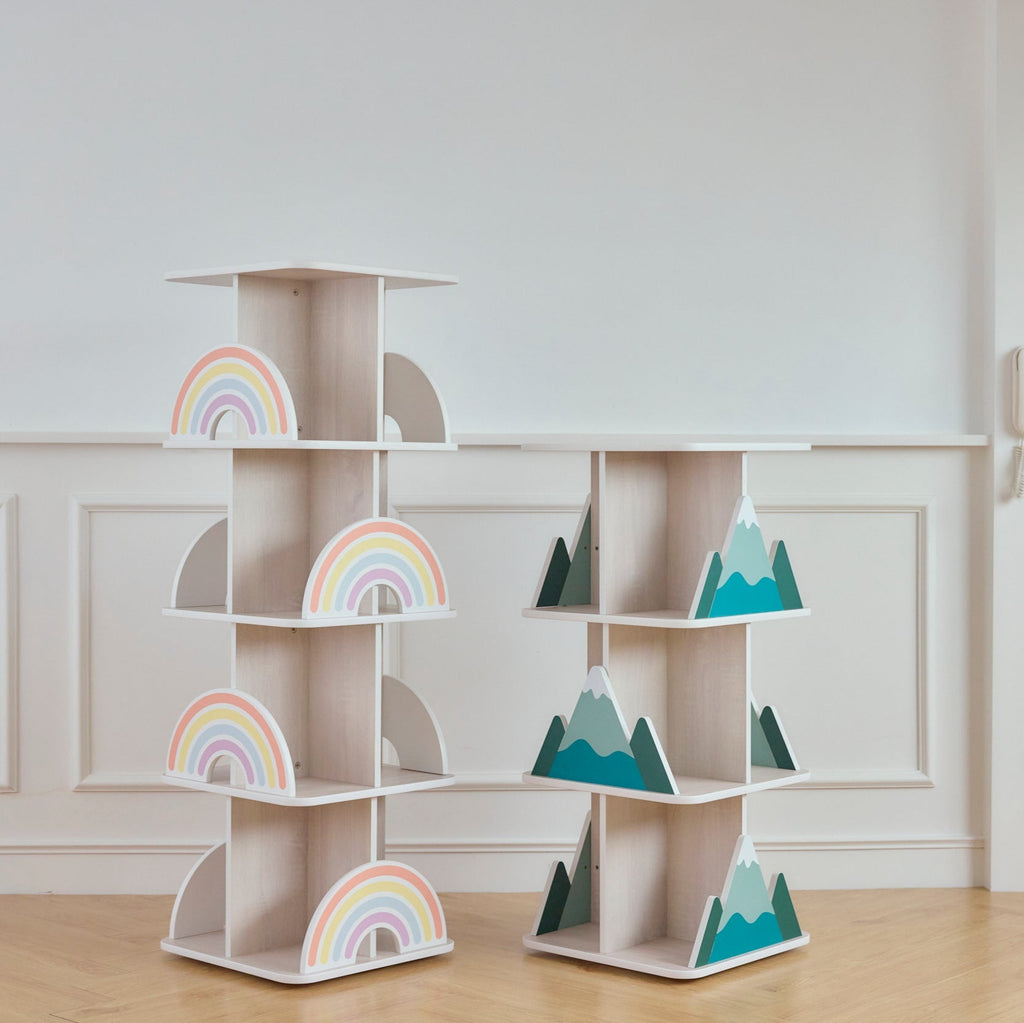 可愛山造型擋板,收納的同時也在展示書籍,能輕鬆融入各種室內風格。木紋貼皮採特殊粗糙表面處理,即使小朋友抓刮也不易損壞。