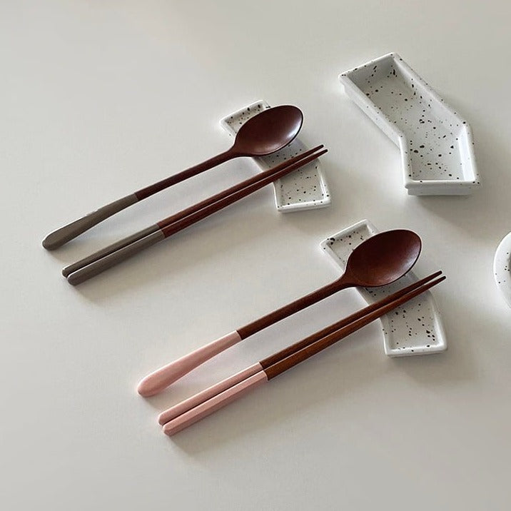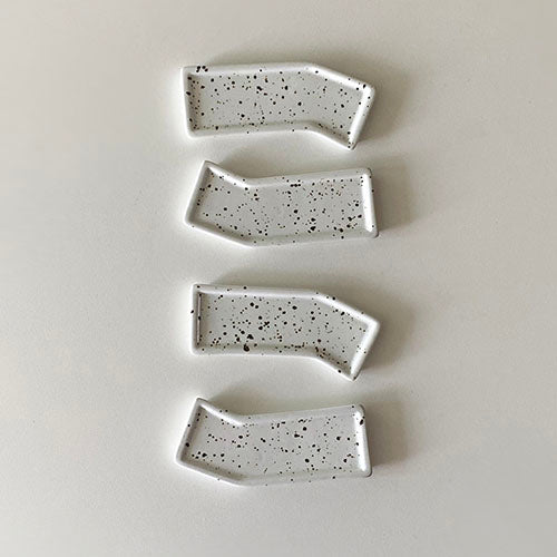The Urban series uses semi-gloss white glaze and black iron spots to create unique expressions. This exquisite bending cutlery rest is also a mini tray. The slightly raised edge can better prevent the flatware from slipping, and the curved design provides enough space to put all kinds of chopsticks, forks and spoons. It is beautiful and functionable, adding a nice touch to your dining table.