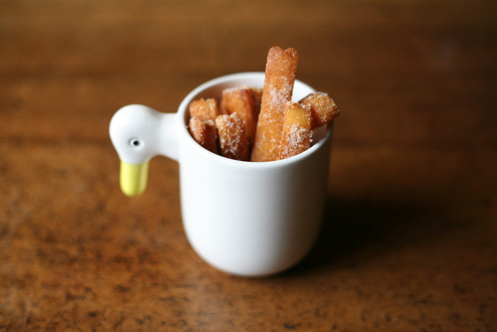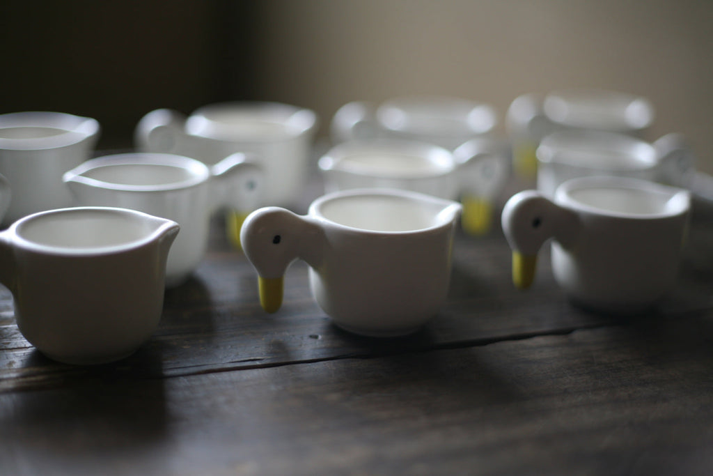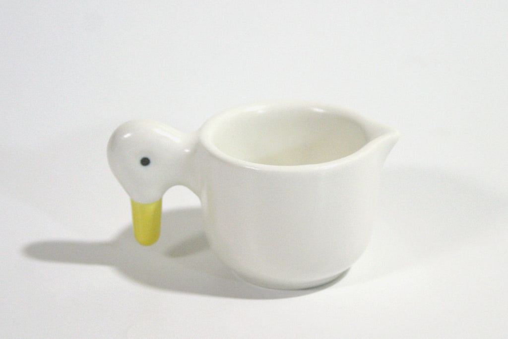 奶精杯:L 7.8 x W 4.9 x H 4.3 cm (25 ml),巧妙的將鴨子尾部設計成倒口,除了盛裝咖啡和茶用的牛奶、糖精,也適用於蜂蜜或是其他醬汁。