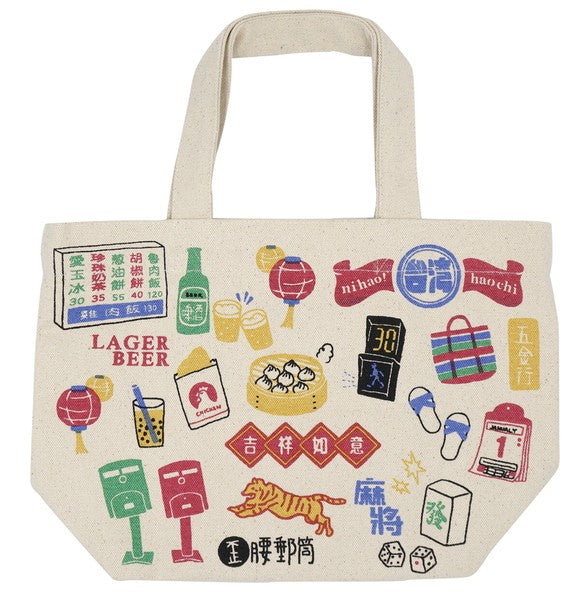 This design, full of Taiwanese elements, showcases iconic symbols like Taiwan Beer, bubble tea, blue-and-white slippers, and the leaning mailbox, making it an ideal souvenir to gift to friends abroad!