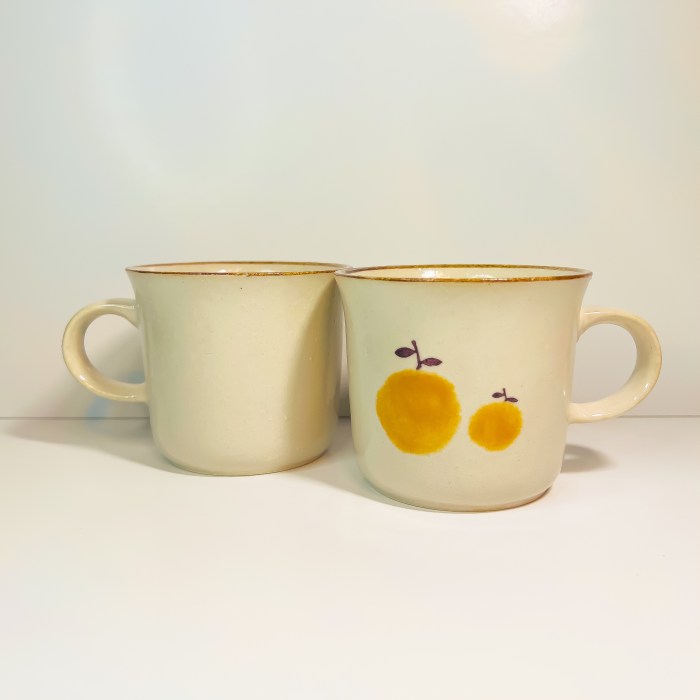 The lovely hand-painted fruit pattern makes this Mino ware cup look full of fun and impressive. There are two styles to choose from. Use these cute mugs to enjoy your milk, coffee, or juice with kids, and add some colors to your dining table.