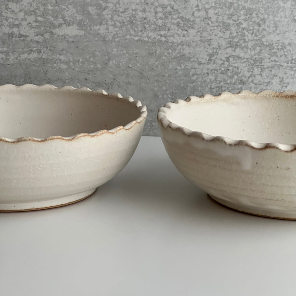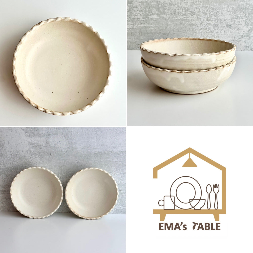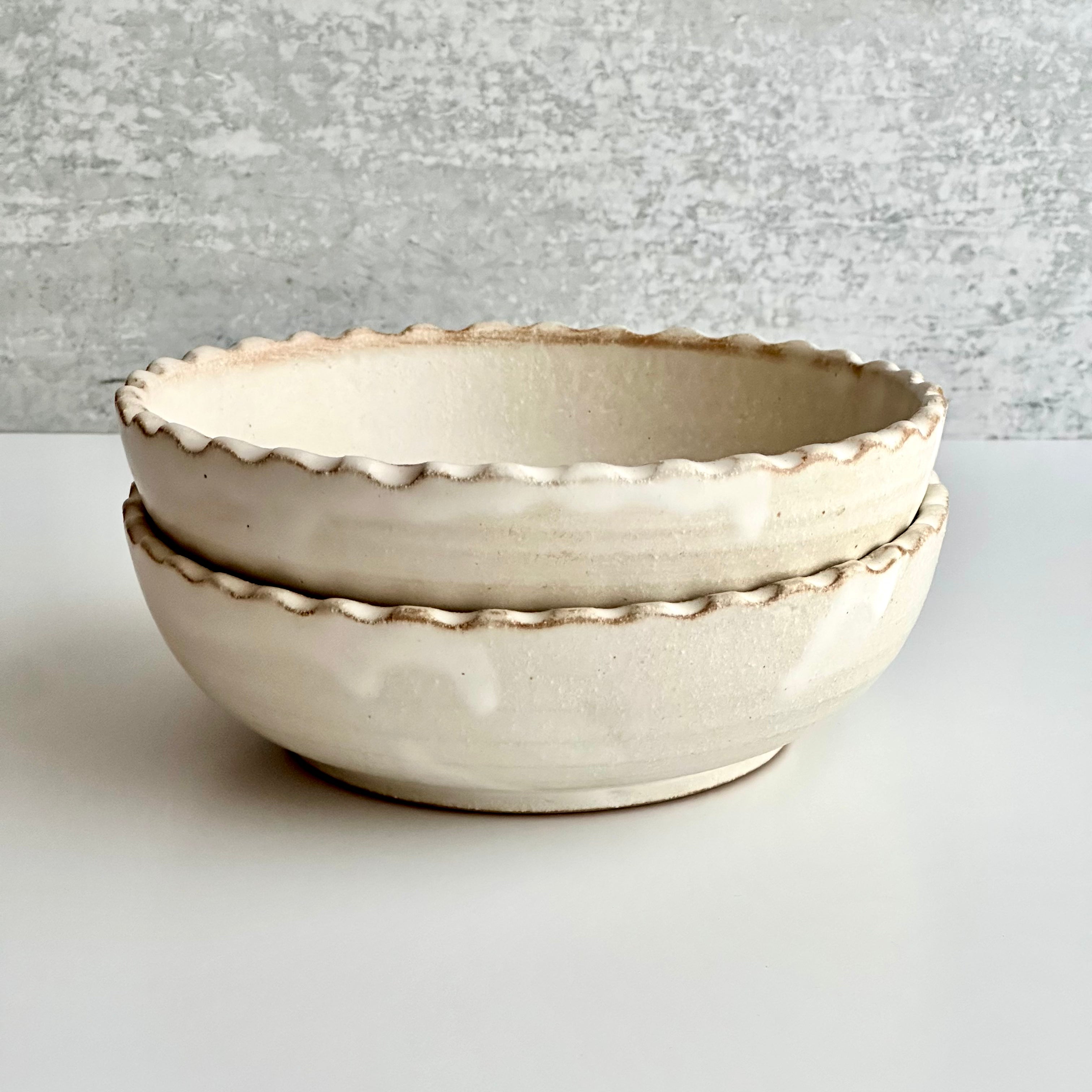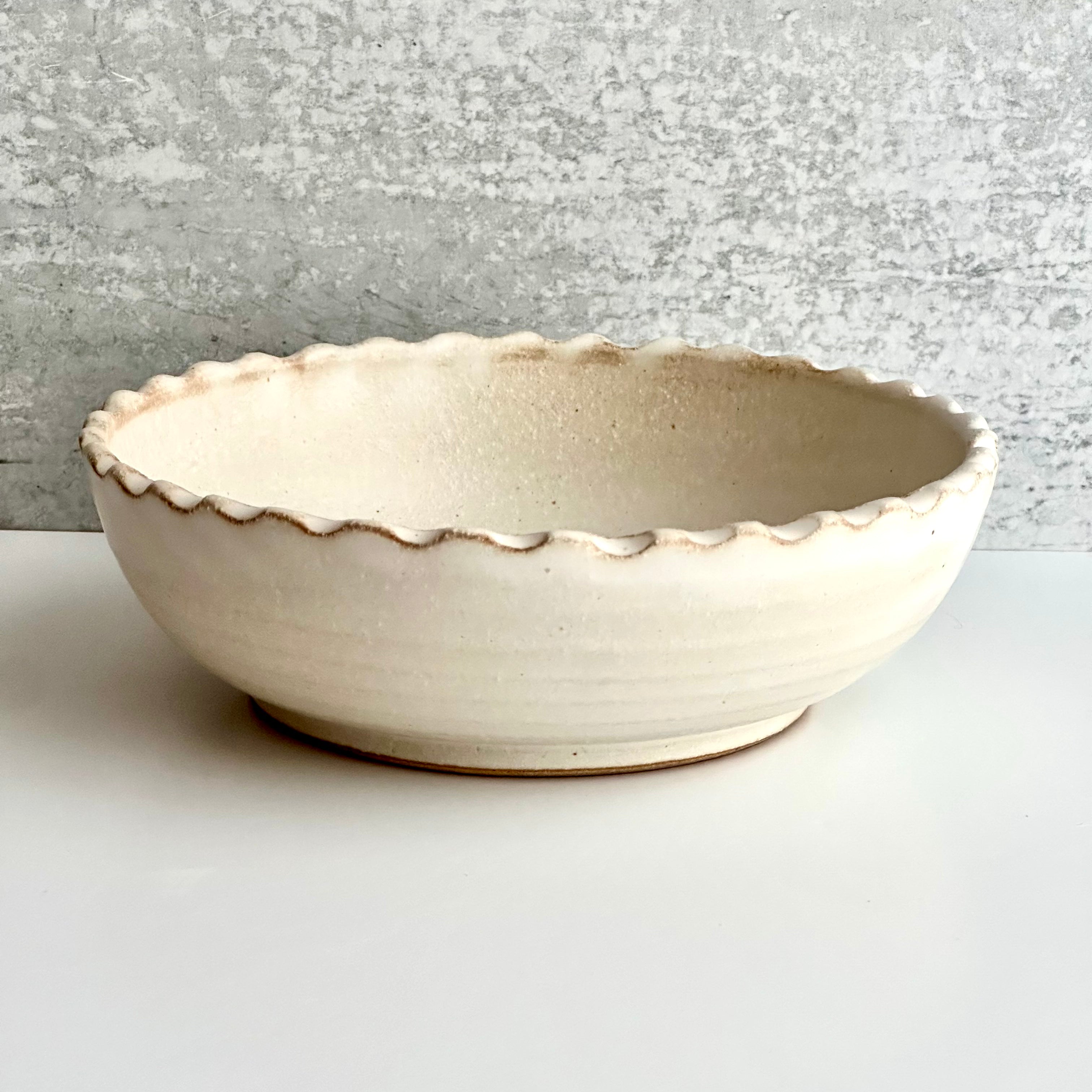 這款益子燒淺碗由日本職人手工製作,以蕾絲般的邊飾展現優雅質感,散發溫潤手感與自然風格。16 cm 尺寸適合盛裝沙拉、煮物、穀片或燉菜,自然象牙色與釉藥濃淡交錯,呈現樸實之美,是日常用餐的溫馨良伴。