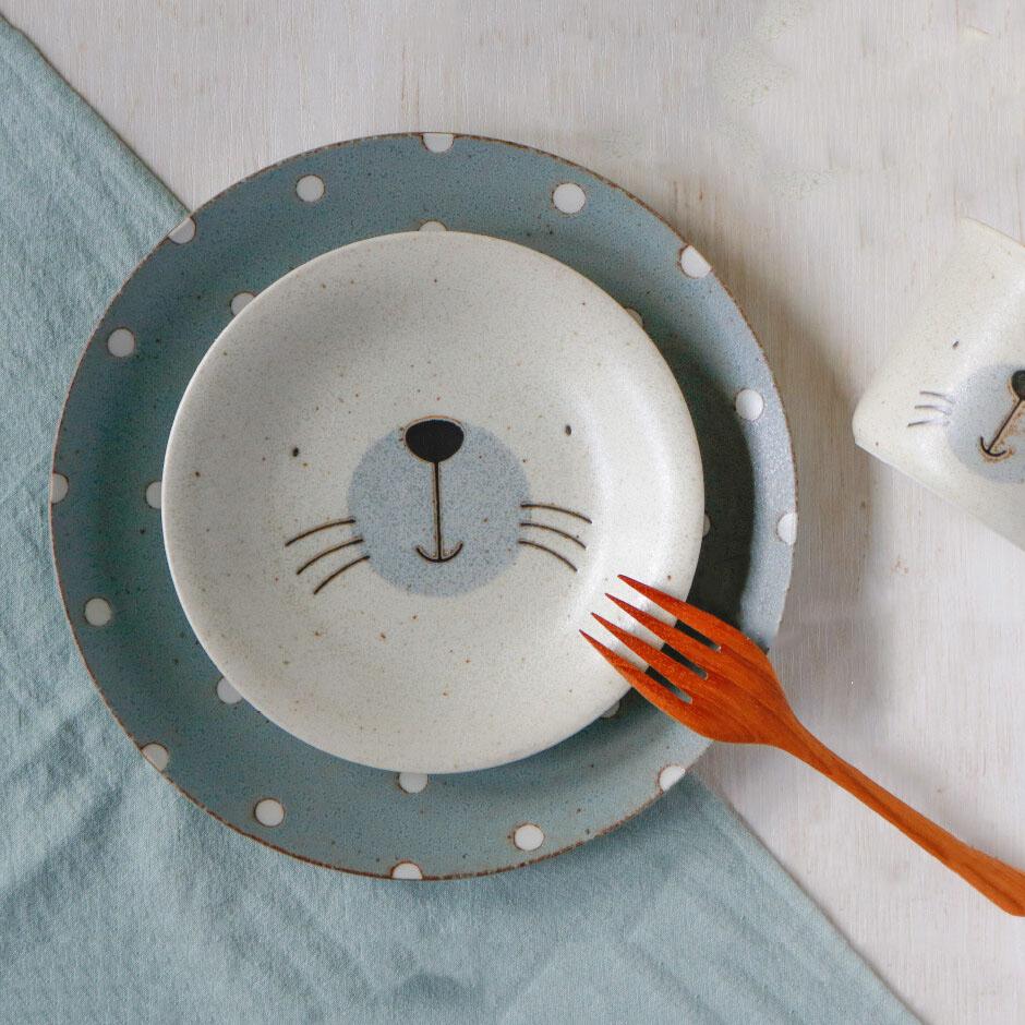 Coming from the popular Mogu Mogu series, this Mino Ware plate is designed with animal faces, including a lovely lion, a chubby hedgehog and a lazy seal. Use these cute plates to enjoy your dining time with kids. Ema’s Table also has the mug and large size plates that are designed with animal markings in the same series for sale.