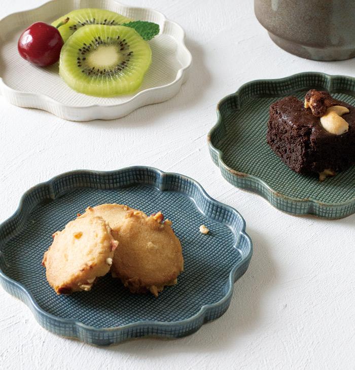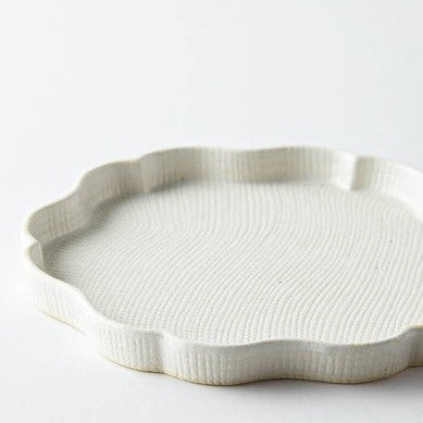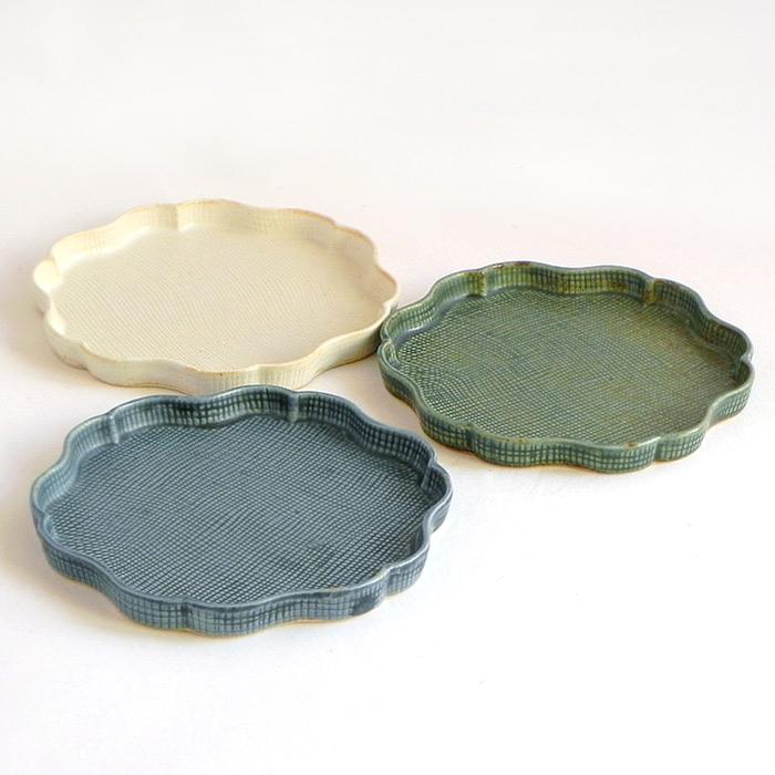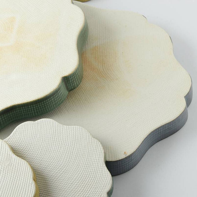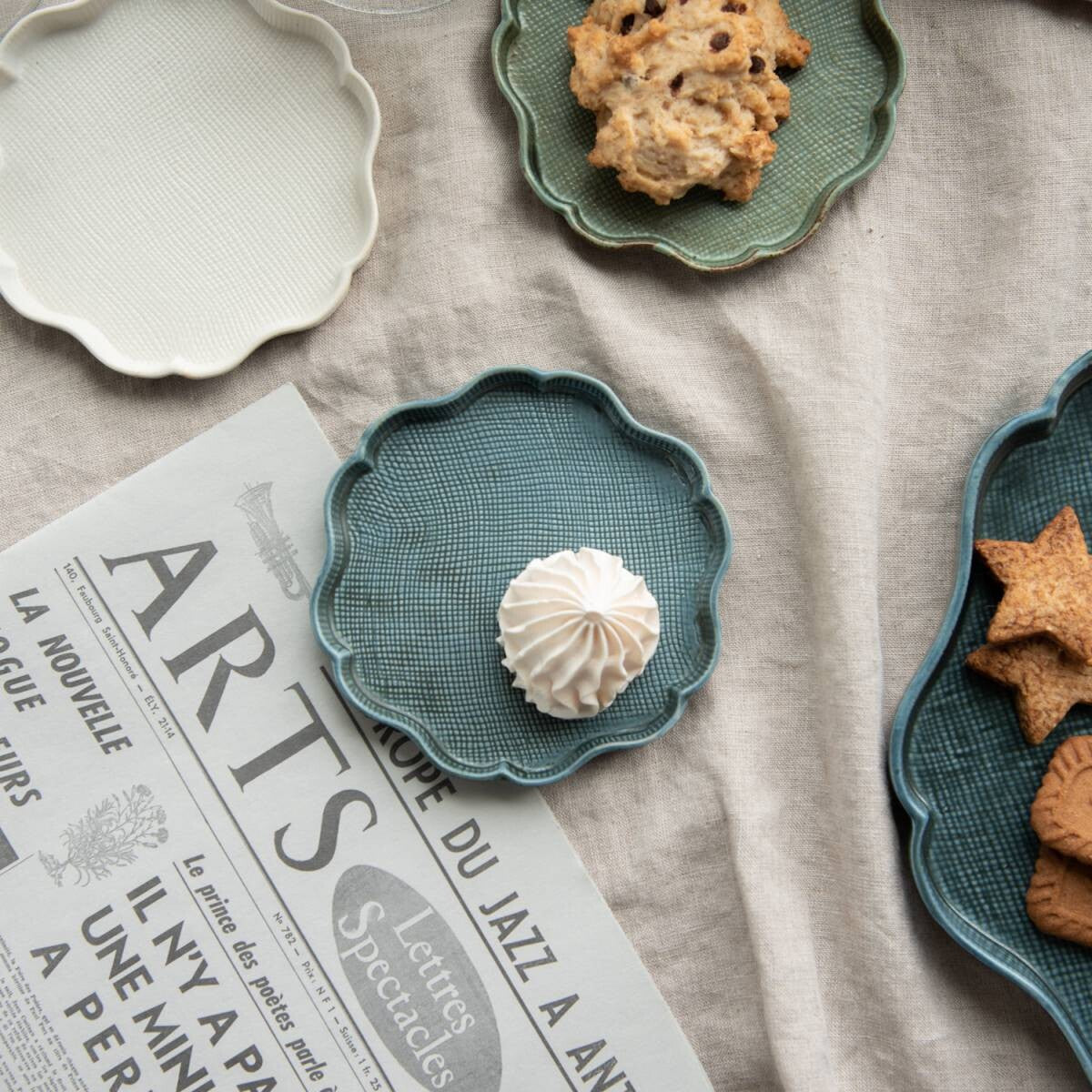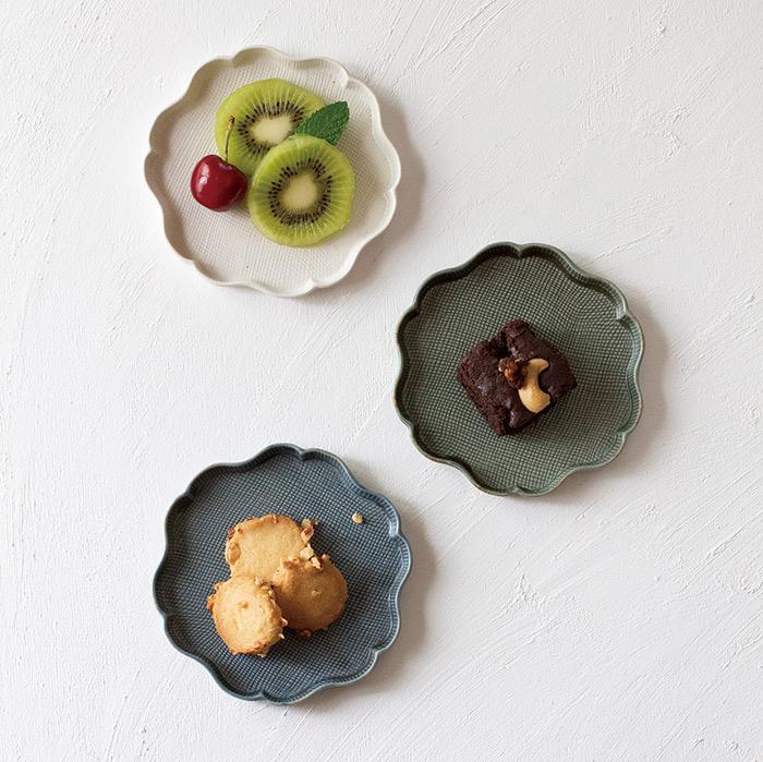 Newly designed in 2020, this Mino ware plate is manufactured with the Tatara method. The delicate cotton texture pattern, beautiful flower shape, and the calm tone make it look special and tasteful. Being small and flat, it is great for serving appetizers, desserts, fruits and snacks. Use it to lay out your usual dishes beautifully like a painting and enjoy the table art. Available in 5 colors, it also comes with an individual box that is perfect for gifts.