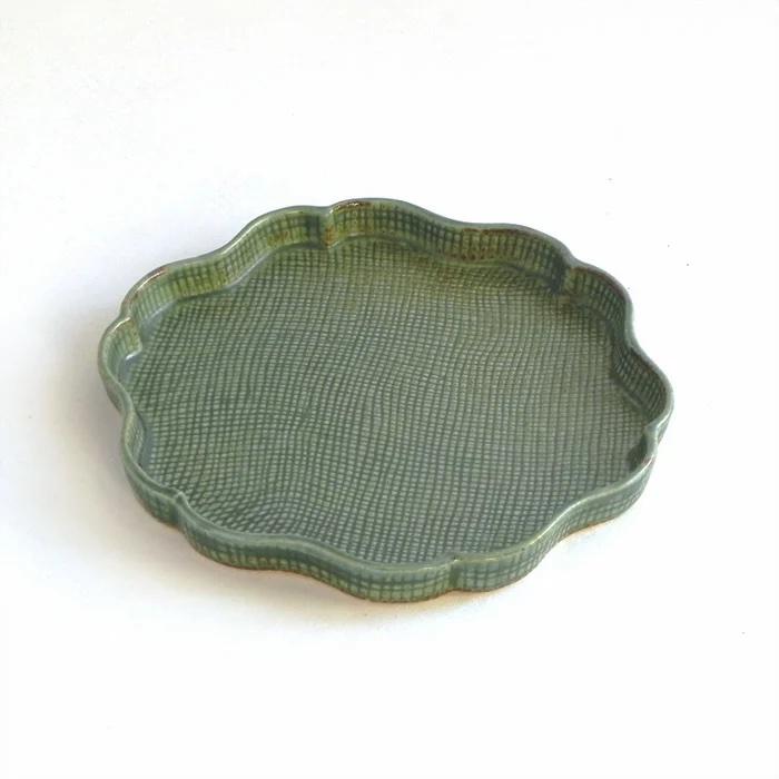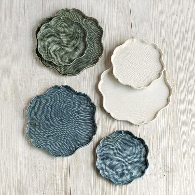 此款美濃燒盤子是2020年新品,採用特殊的Tatara製造方法,精緻的棉質紋理圖案優雅有品位,花邊造型獨樹一格,沉穩樸實的色調更增添時尚感。其小巧可愛,形狀扁平,邊緣略微凸起,非常適合承裝開胃菜、甜點、水果、零食等等。使用它來把你平常的佳餚像一幅畫那樣精美地排列佈置,享受餐桌藝術。多達5款顔色選擇,更配有獨立禮盒包裝,自用送禮兩相宜!