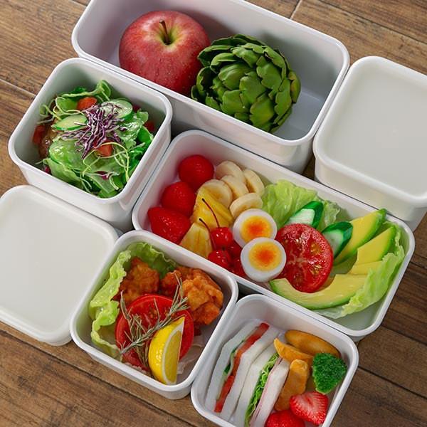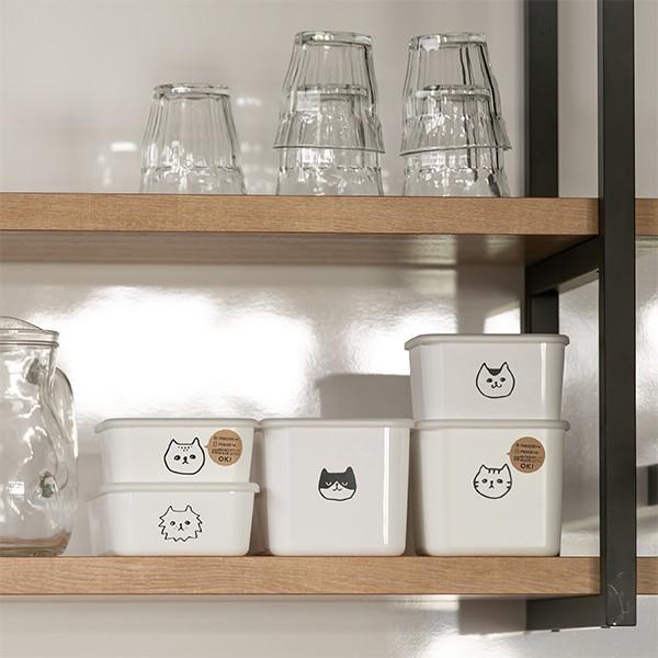 PFF series stocker has five sizes total and features a cute cat design. Comes with a lid, this square container has a useful size for meal prep, leftovers, lunch box, snack box, or as a accessories container. Since it can be stacked, the inside of the refrigerator is neatly arranged.