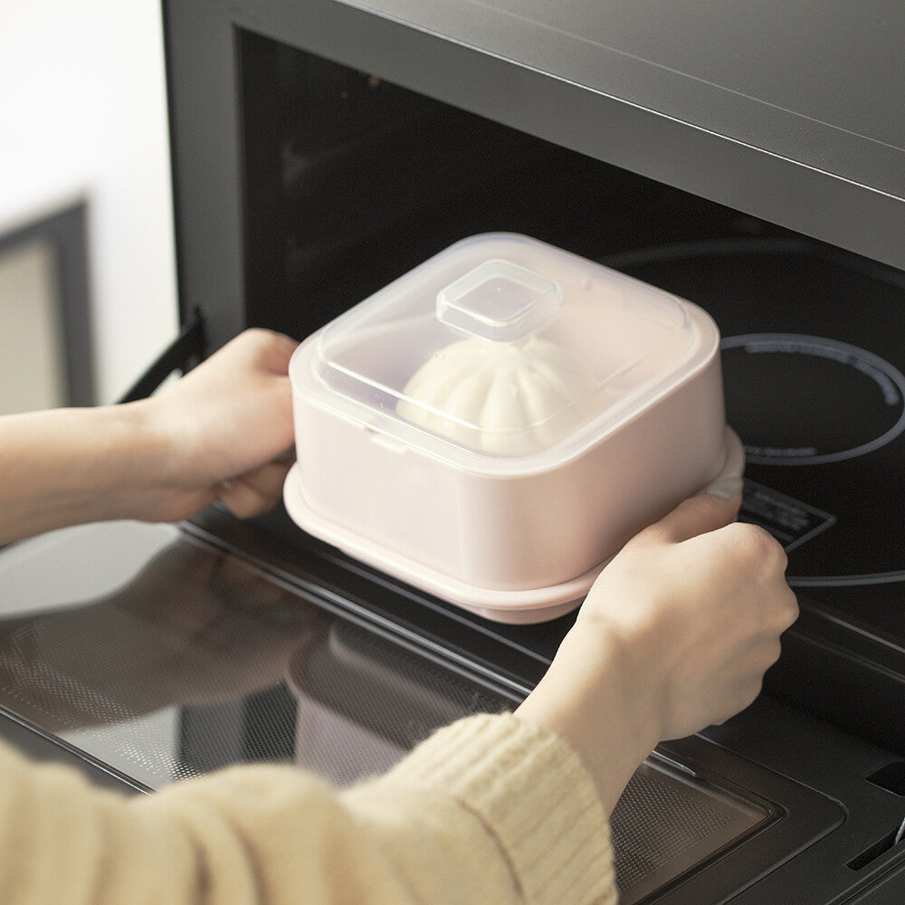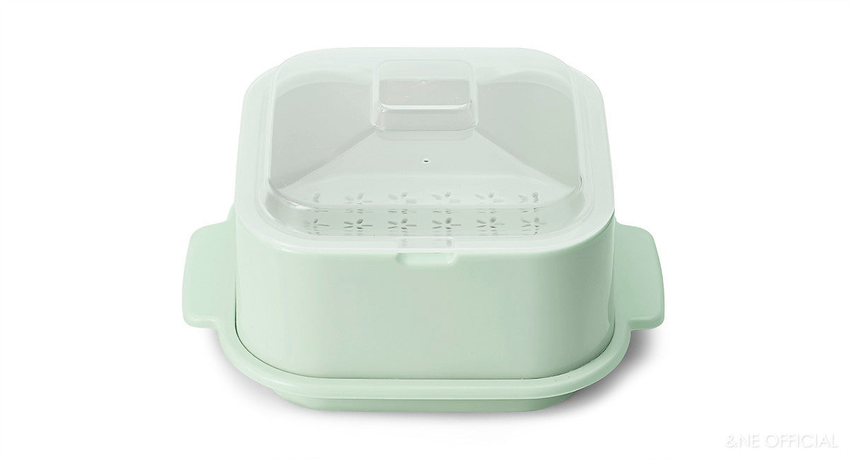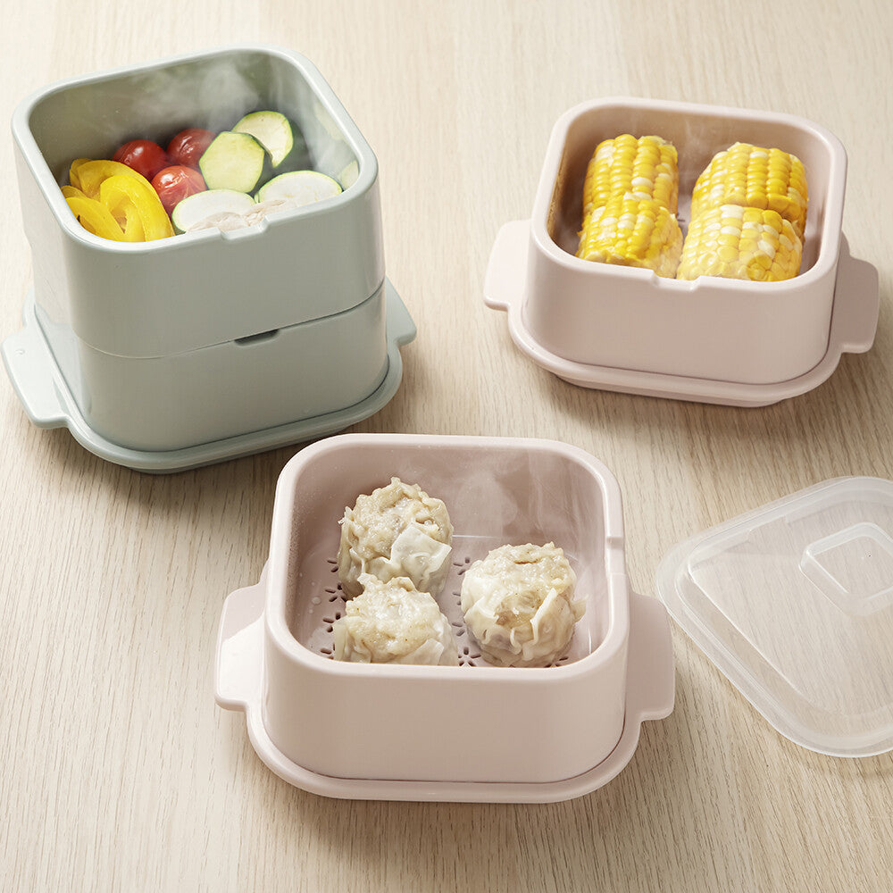 專為微波爐設計的小蒸盒,是加熱隔夜飯及冷凍食品的最佳容器。附有專用上蓋,能防止食物解凍時的汁液爆出,且設有排氣孔能調配內外溫度。底座部分則能盛水,增加微波時的濕度,讓饅頭、貝果等烘焙麵包不會太乾,非常方便。共有兩款色系,方方正正的外型不只可愛,也能堆疊收納,最適合每天都會用到微波爐的你!