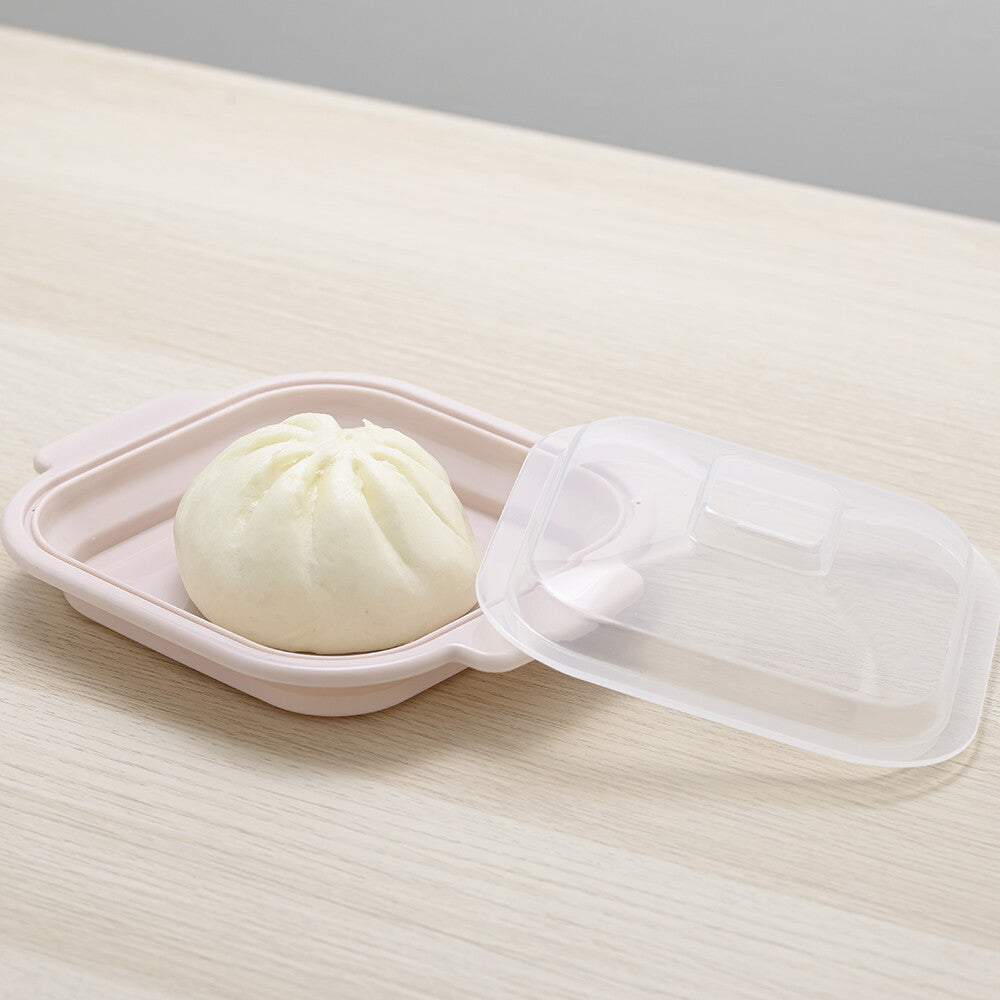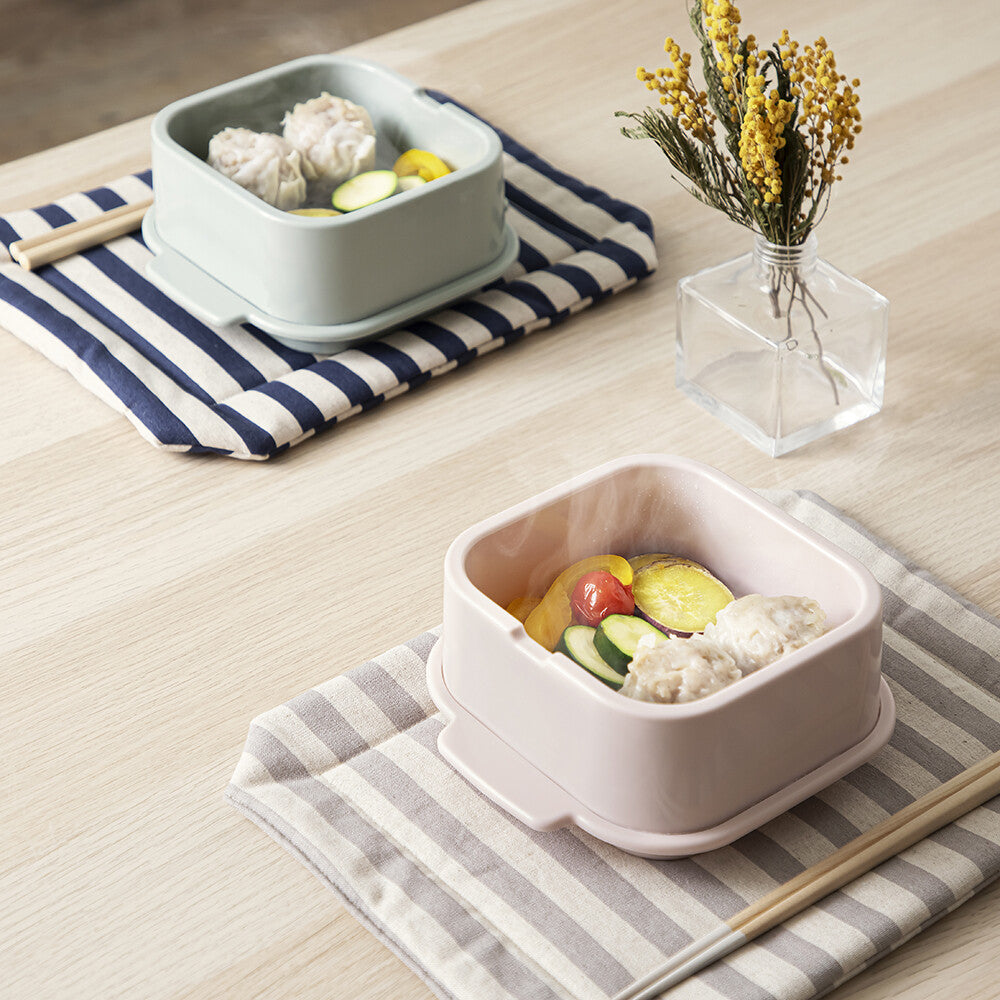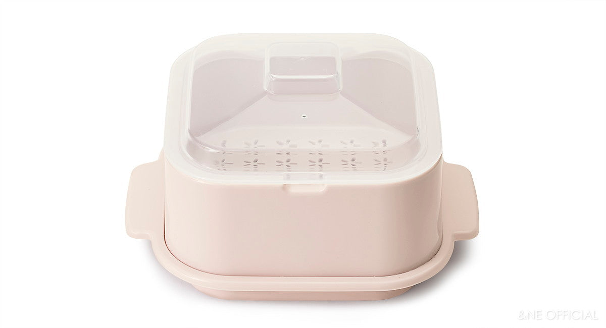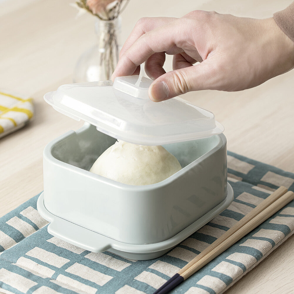 專為微波爐設計的小蒸盒,是加熱隔夜飯及冷凍食品的最佳容器。附有專用上蓋,能防止食物解凍時的汁液爆出,且設有排氣孔能調配內外溫度。底座部分則能盛水,增加微波時的濕度,讓饅頭、貝果等烘焙麵包不會太乾,非常方便。共有兩款色系,方方正正的外型不只可愛,也能堆疊收納,最適合每天都會用到微波爐的你!