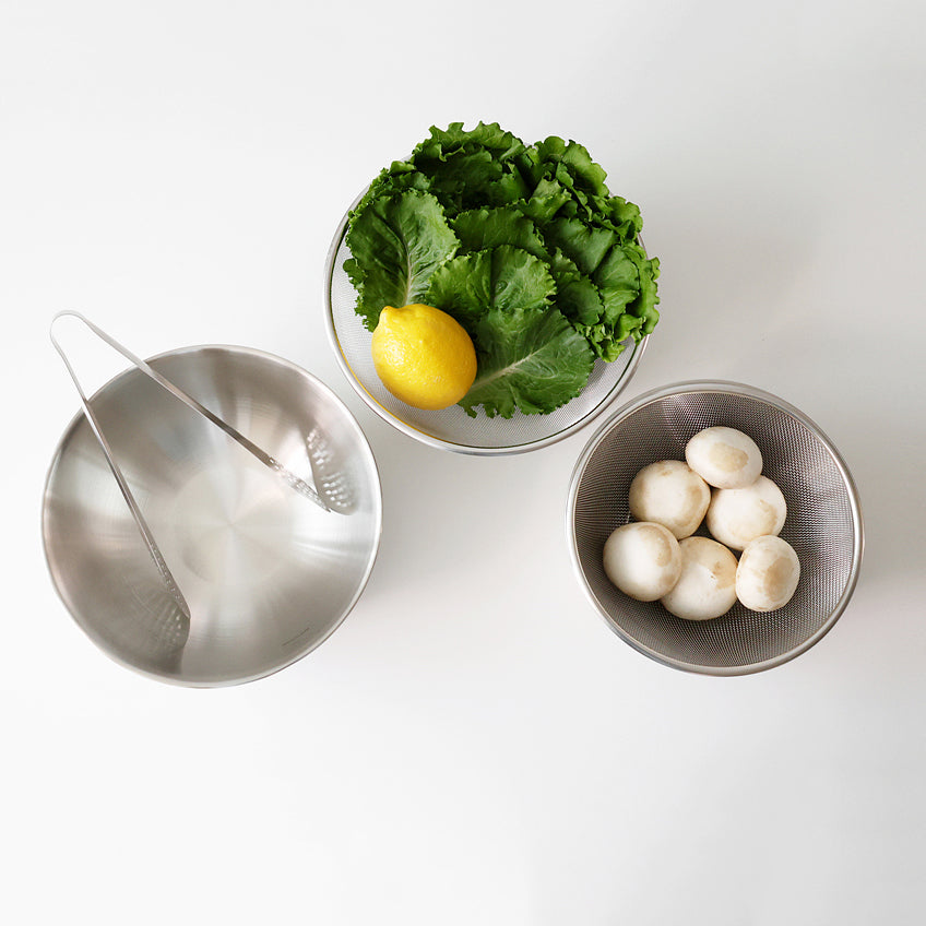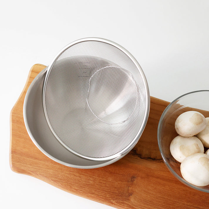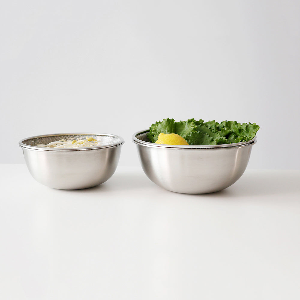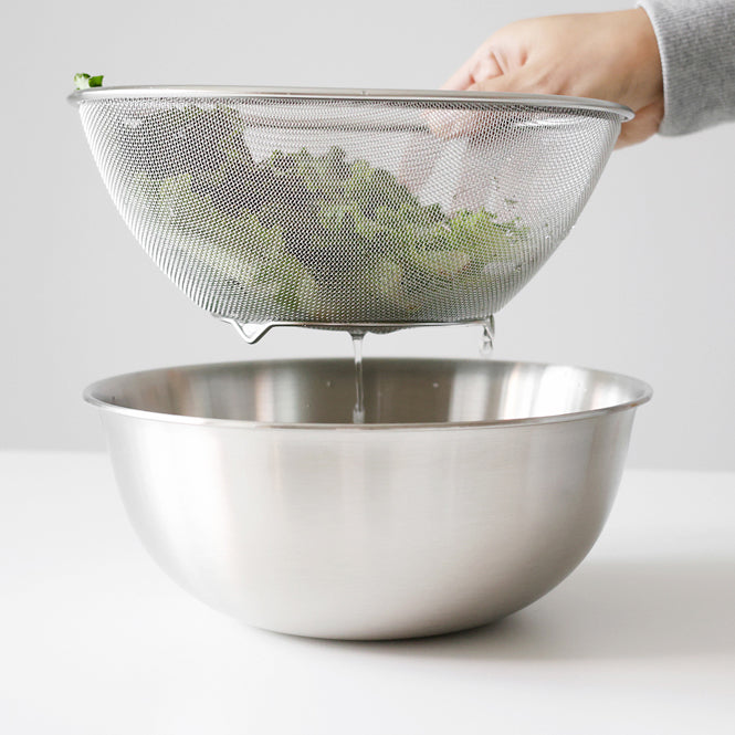 讓備料更加輕鬆的攪拌盆濾網組,選用優質不鏽鋼打造,碗身內附有刻度標示,濾網下方設有立腳,避免食材直接接觸檯面,衛生安全又耐用。共有 2 款尺寸,無論是要備料、醃肉、做甜點都能使用,是廚房中不可或缺的貼心幫手!