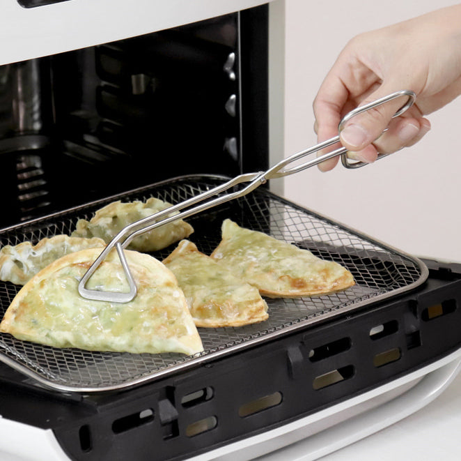 Made of high quality 18-8 stainless steel, these triangular food tongs is durable and hygienic. The unique curved design ensures a smooth holding and handling experience, while the textured gripping surface enhances friction for a firm hold on any shape of food, preventing slippage. Ideal for frying or grilling in hot cookware, these tongs offer both safety and precision.