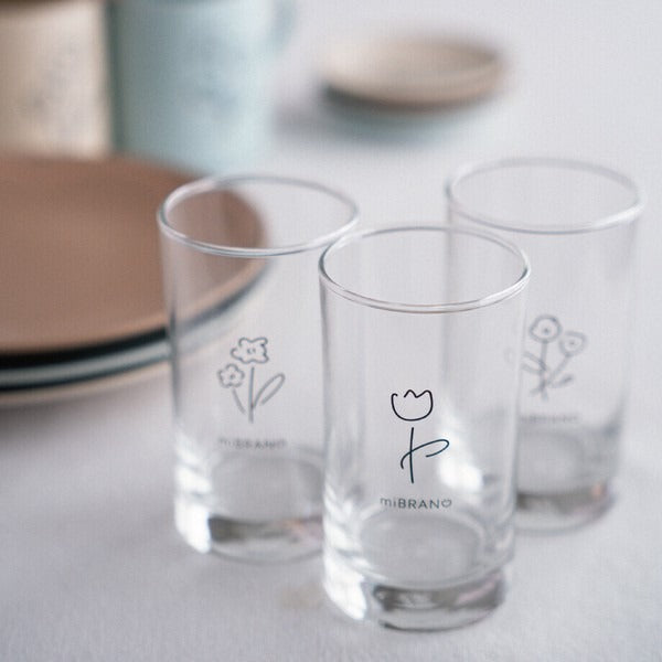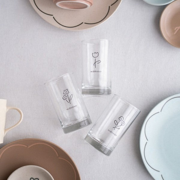 This glass is like a piece of optical art—simple, flowing lines that appear random at first, yet cleverly come together to form a floral outline, creating a delightful visual surprise. Perfect for juice, milk, or tea, it also pairs beautifully with matching plates from the same series to create a playful misaligned pattern effect, adding charm and fun to your table setting.