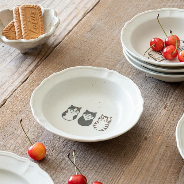 The beloved Shichita Cat series is back with an all-new release! This time, not only are there three adorable cats with wide, curious eyes, but the bowl edges also feature a wavy embossed design, adding a touch of cuteness and elegance to your daily meals. The matte finish gives off a rustic yet mature vibe. The 14 cm bowl is perfect for serving jelly, yogurt, salads, or soups, and the 5-piece gift set also makes it an ideal choice for birthdays, weddings, or housewarming gifts!