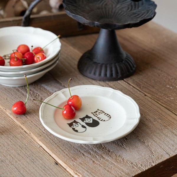 廣受喜愛的 Shichita 貓咪系列再次推出全新作品!這次不只有三隻瞪大眼睛的萌萌貓咪,更在盤緣加入了波浪浮雕,讓每日的餐桌時光更加可愛優雅。質樸的霧面質感,散發沉穩與成熟的氣息。兩款尺寸可選,作為甜點盤、沙拉盤或主菜盤都十分適合,5 入組的禮盒設計,更是生日、新婚、喬遷禮的理想選擇!