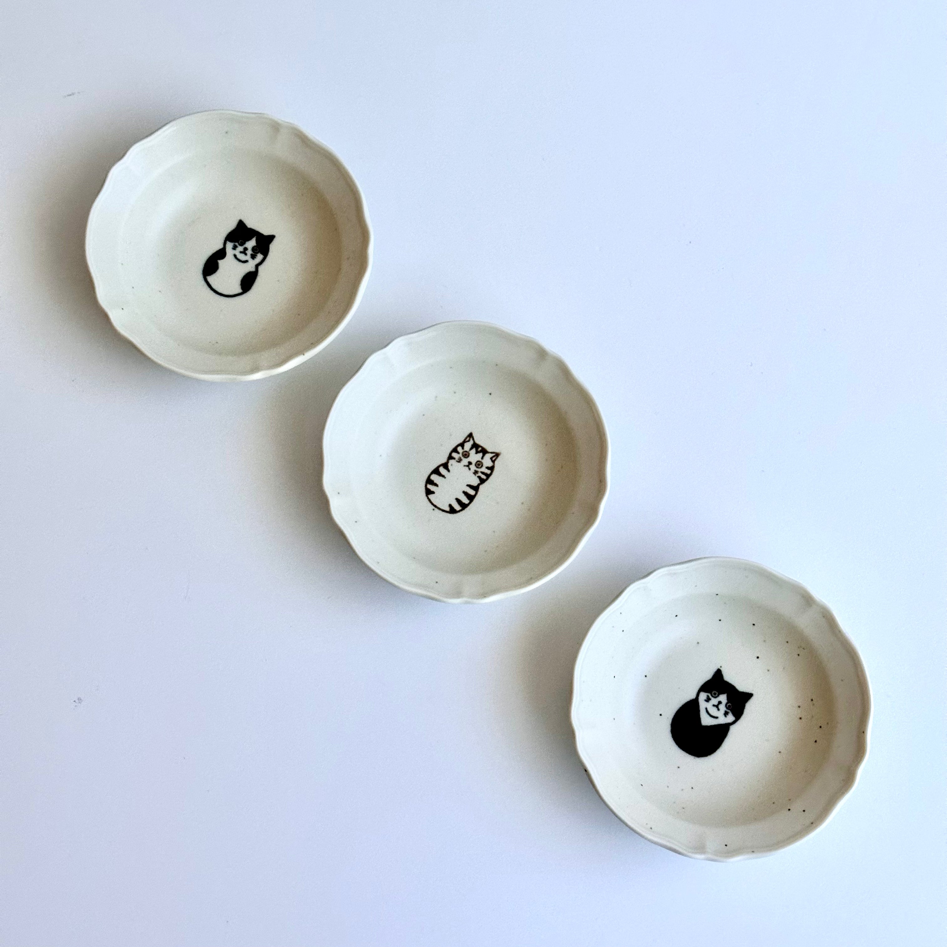 這款小皿以虎斑、三花與賓士貓為主角,每隻貓咪的表情都充滿魅力,展現無限可愛。無論是用來盛放小菜、甜點,還是當日常小鉢,都能帶來療癒的氛圍。貓咪圖樣深得各年齡層喜愛,也是送給愛貓人士的完美禮物,保證讓他們開心無比!