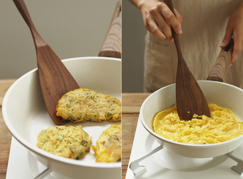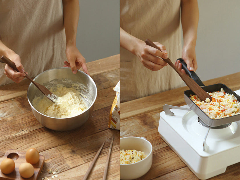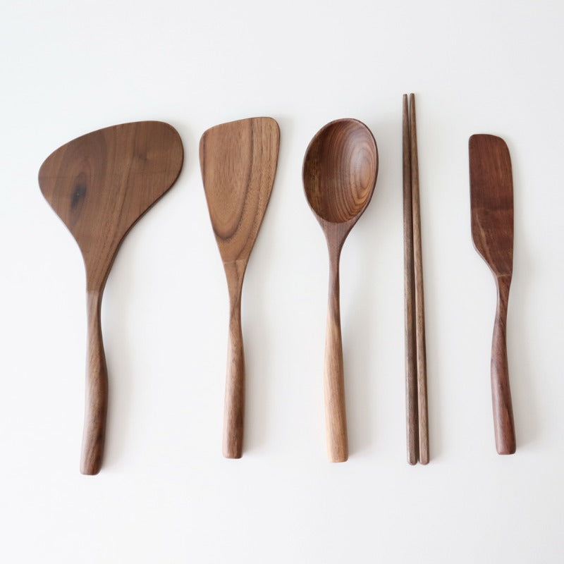 This beautiful wooden kitchen tool series will brings a warm and luxurious feel to your kitchen! Handcrafted from premium solid walnut wood, it is hard and durable, offering an exceptional grip that sets it apart from regular kitchen tools. The natural deep brown grain is unique and pretty. Available in 5 types of tools, which can be used for meal preparation, cooking, and serving.