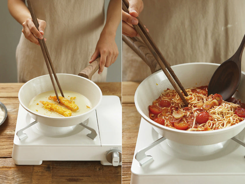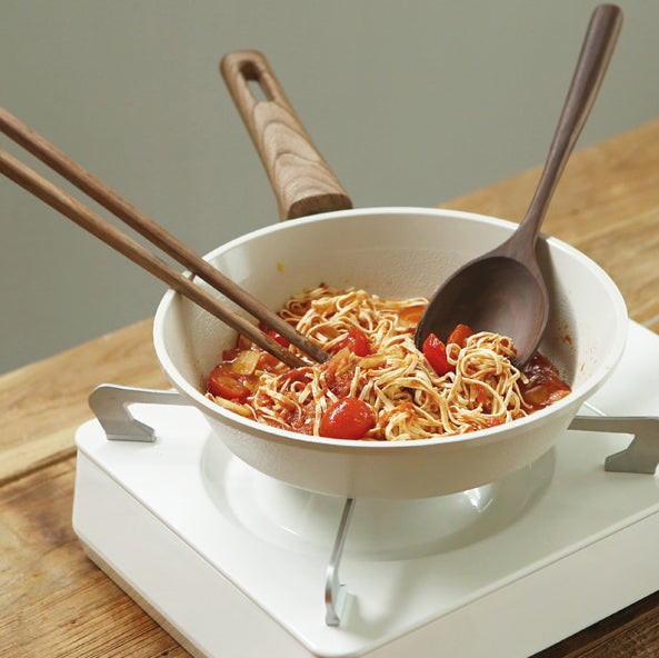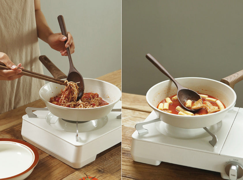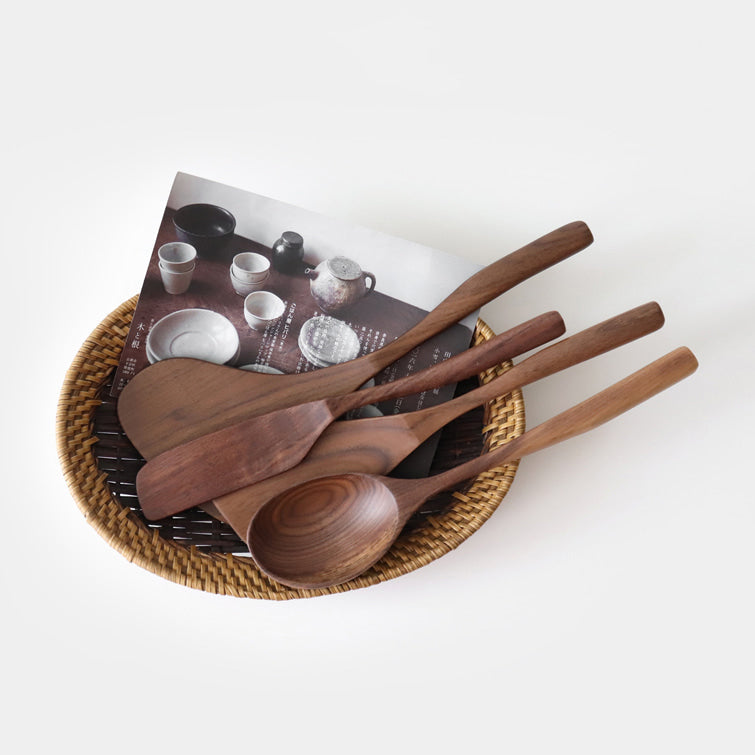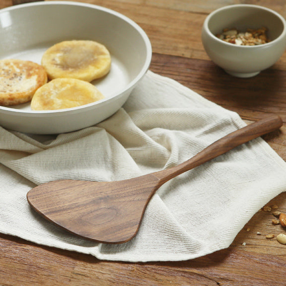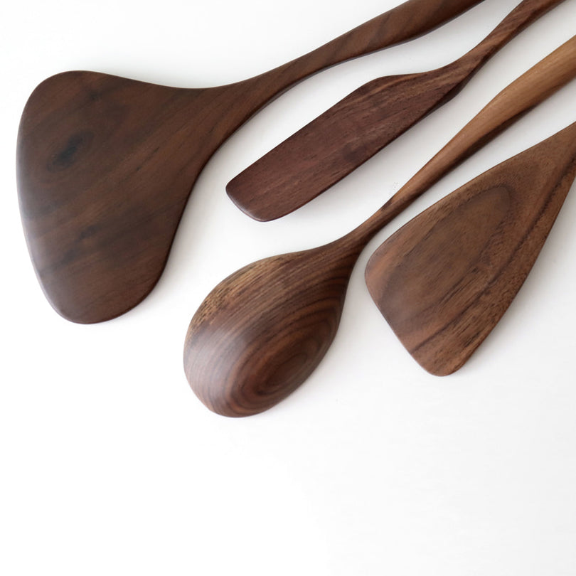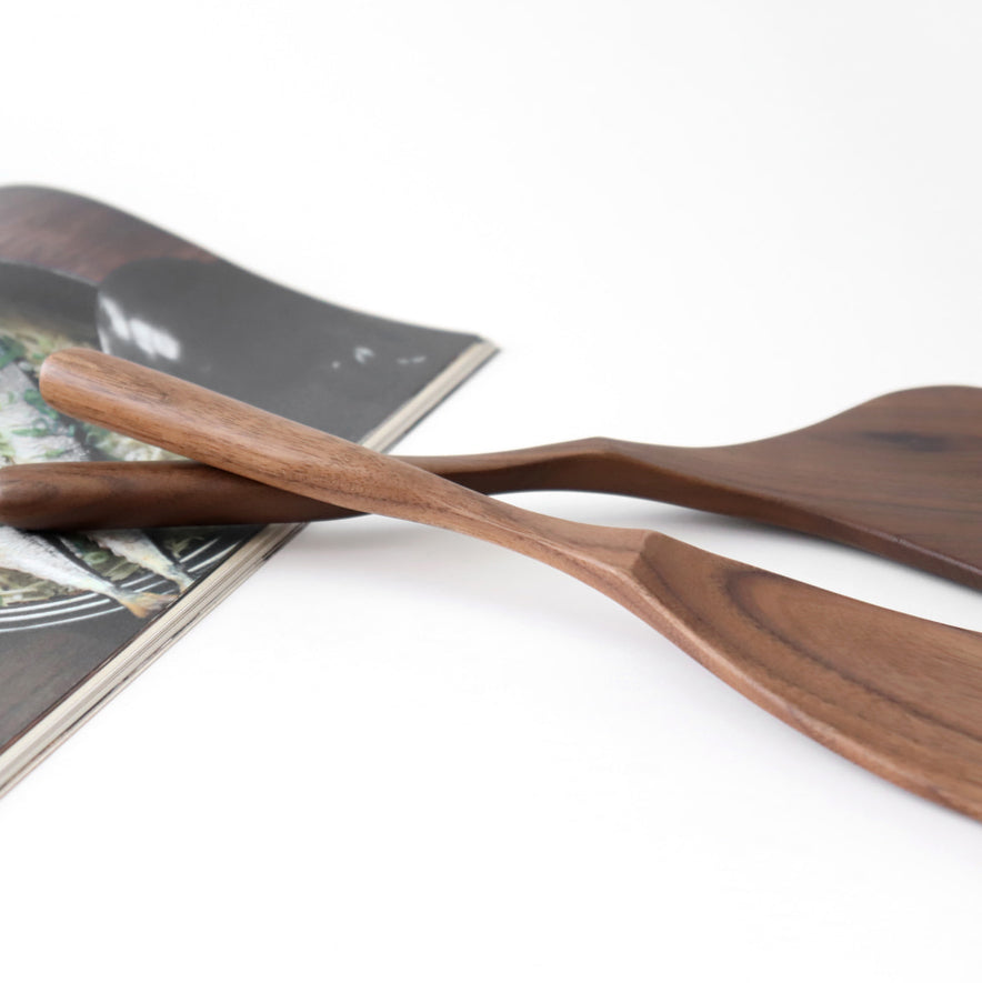 採用優質實心胡桃木手工製作,來自韓國 Kamome Kitchen 的餐廚工具系列,將為你的廚房營造出溫潤奢華的質感!胡桃木本身結構剛硬耐用,天然的深棕色木紋,配搭上良好的握感,只要用過就能感受出與一般餐具的差別。全系列包含攪拌抹刀、長筷、炒菜匙與兩款鍋鏟共5款,獨特的外型設計,符合人體工學的角度,而且不傷鍋具,將讓烹調料理更順手且美觀!