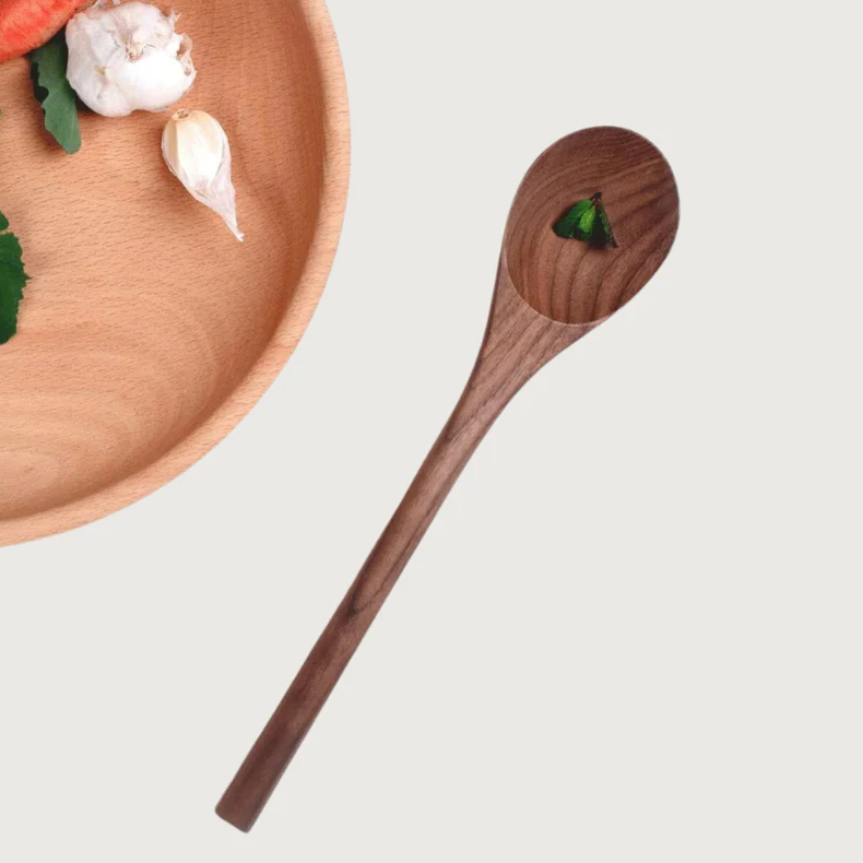 以整塊美國黑胡桃木打造,經過食品級保養油細緻處理,質感溫潤細膩。橢圓形匙面設計,無論攪拌、舀取或烹調,都能得心應手,天然木質紋理展現獨特魅力,是結合實用功能與美學質感的理想廚房良伴。