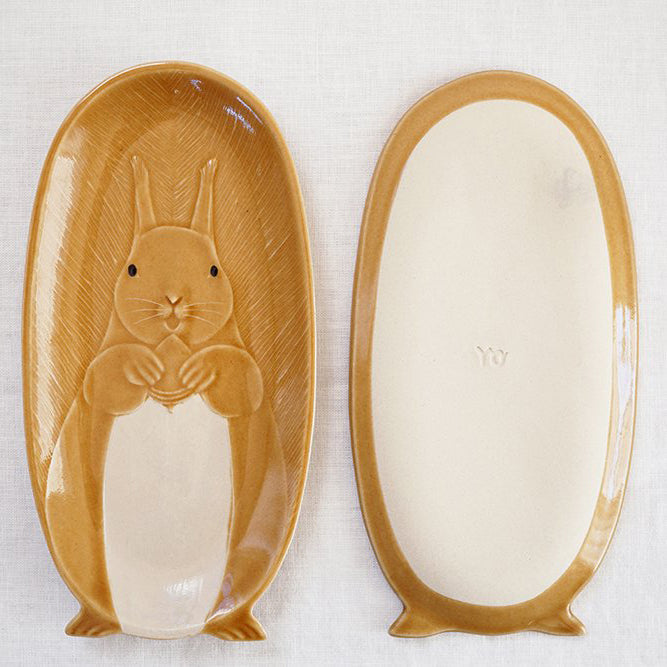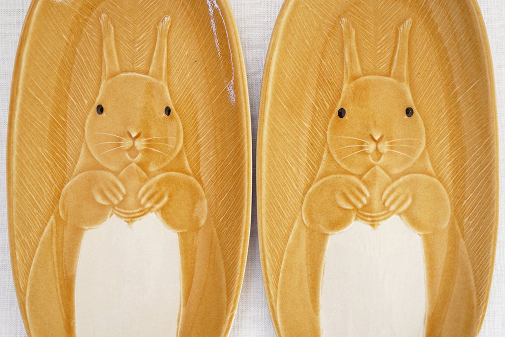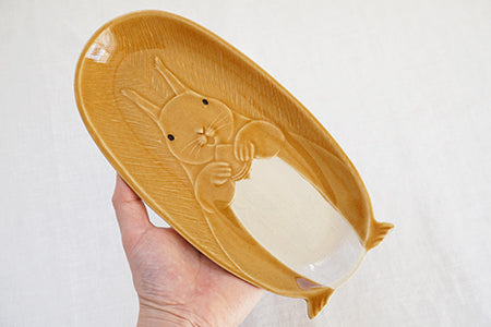 益子燒 松鼠橢圓盤 9”(附松果筷架)