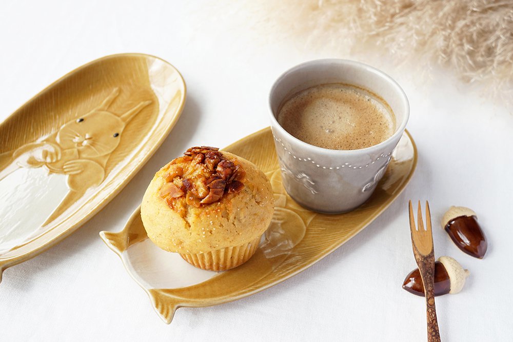 毛茸茸的大尾巴,手裡緊握著一顆松果,水汪汪的大眼盯著你看的景象,實在令人心曠神怡!來自吉澤窯的松鼠盤,以帶有光澤的焦糖色澤,搭配白色的毛絨大肚,把松鼠可愛的模樣描繪地栩栩如生。造型盤旁再放上一顆松果形狀的筷架,讓餐桌瞬間熱鬧了起來,活潑有趣的風景任誰看了都入迷。