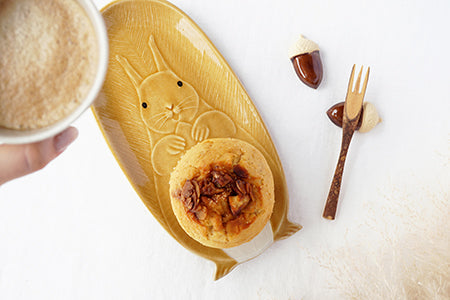With its fluffy big tail and a pinecone tightly held in its paws, the bright-eyed squirrel gazing at you is truly heartwarming! This squirrel plate from Yoshizawa Kiln features a glossy caramel color paired with a soft white belly, vividly capturing the squirrel's adorable charm. Accompanied by a pinecone-shaped chopstick rest, this set instantly adds a lively and fun atmosphere to your table, creating an enchanting dining scene that no one can resist!