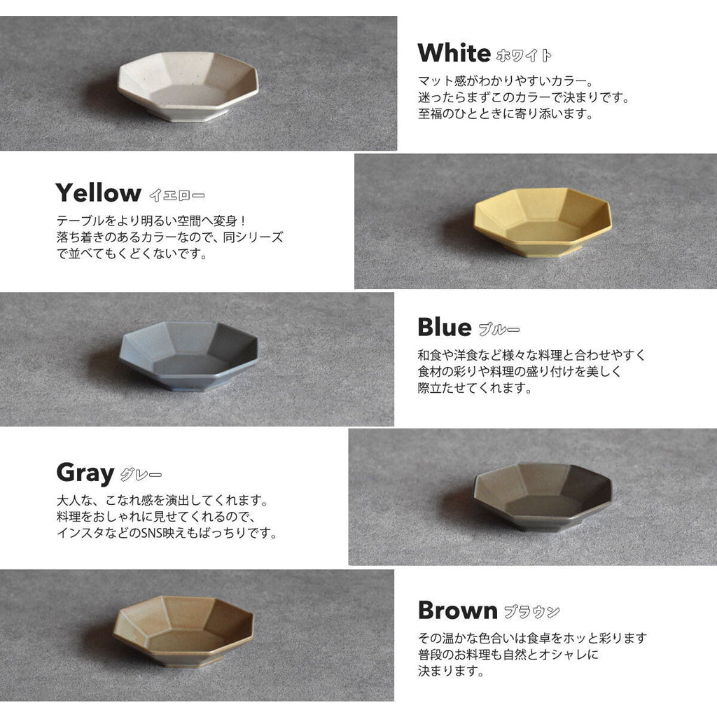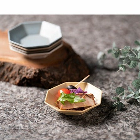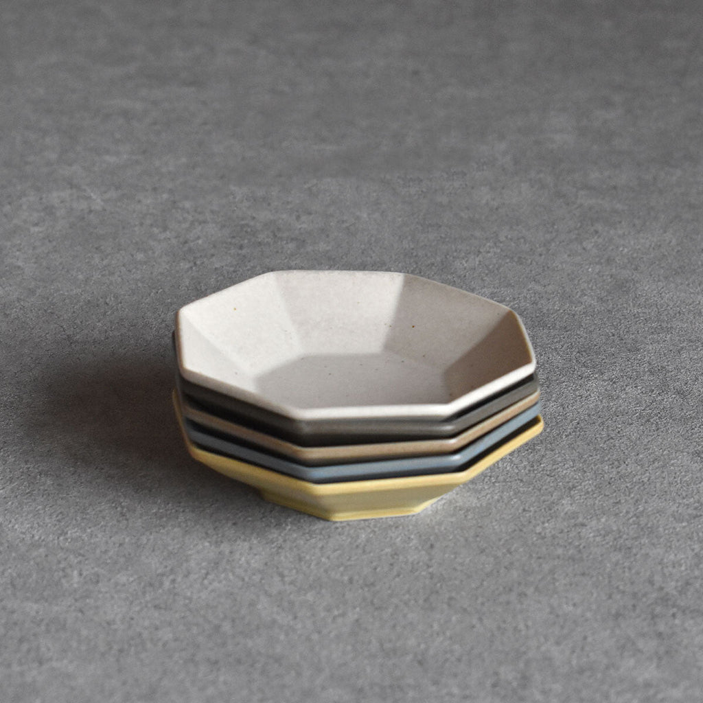 This Mino ware mini plate has a modern and refreshing design. The octagonal shape and gentle earth color tone make it a stylish addition to your dishes. It is lightweight, stackable, and easy to use. The 3.5" size is perfect for pickles and all kinds of condiments, or used as a sauce plate. With a variety of color options, it is definitely a tableware that can be used without hesitation every day.