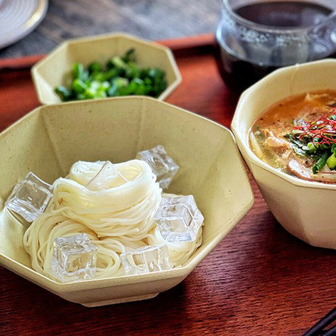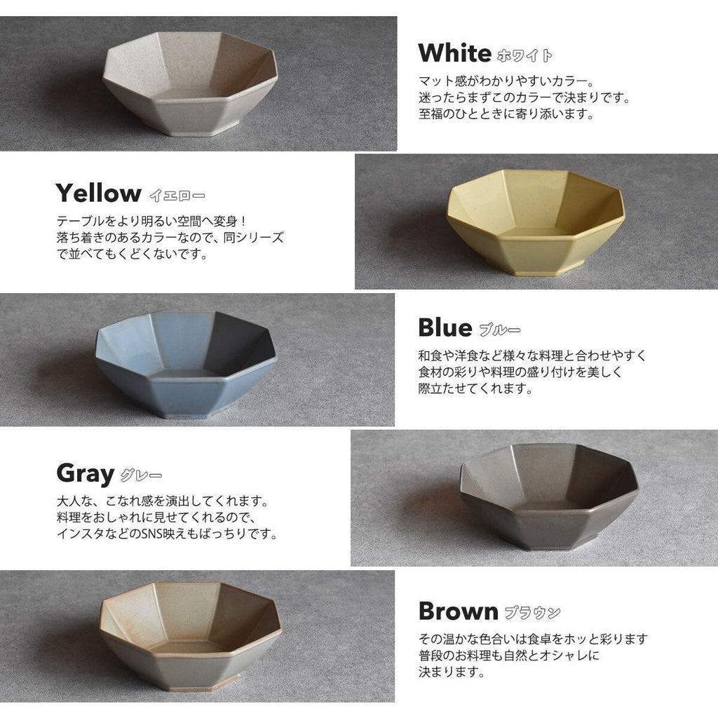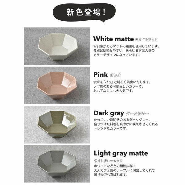 This Mino ware medium bowl has a modern and refreshing design. The octagonal shape and gentle earth color tone make it a stylish addition to your dishes. It is lightweight, practical, and easy to use. 450 ml capacity can easily hold stewed dishes, pasta, and soup, or used as a large rice bowl. With a variety of color options, it is definitely a tableware that can be used without hesitation every day.