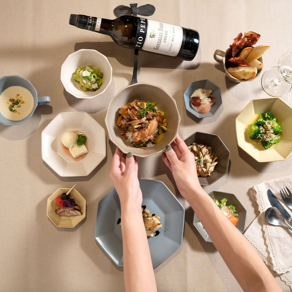 時尚清新的八角中型碗,搭配沉穩的大地色系,美觀與實用兼具。美濃燒輕巧的質地讓每天使用更加便利,絕對是你天天都想端上桌的餐具。5.4 公分深度 450 ml 容量,可輕鬆盛裝各式燉煮菜餚,無論義大利麵、湯品,或是當作大胃口家庭的飯碗,都非常適合。更有多款顔色選擇,一年四季都適用,搭配同系列的盤子更有質感!