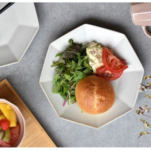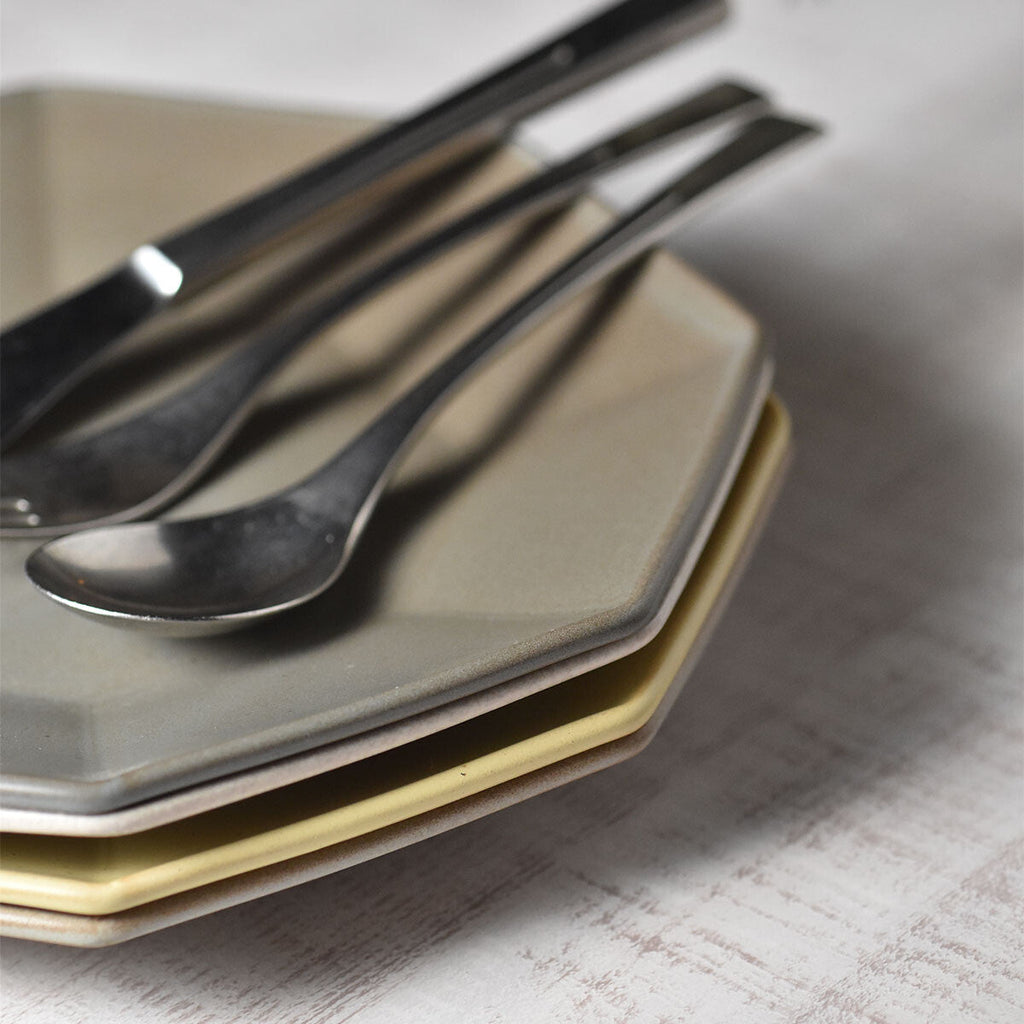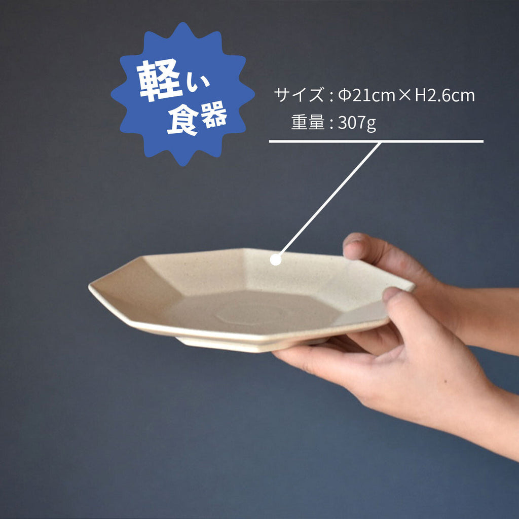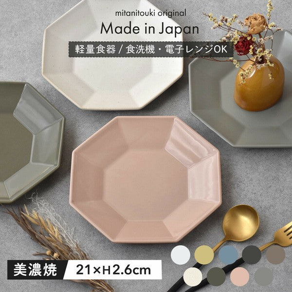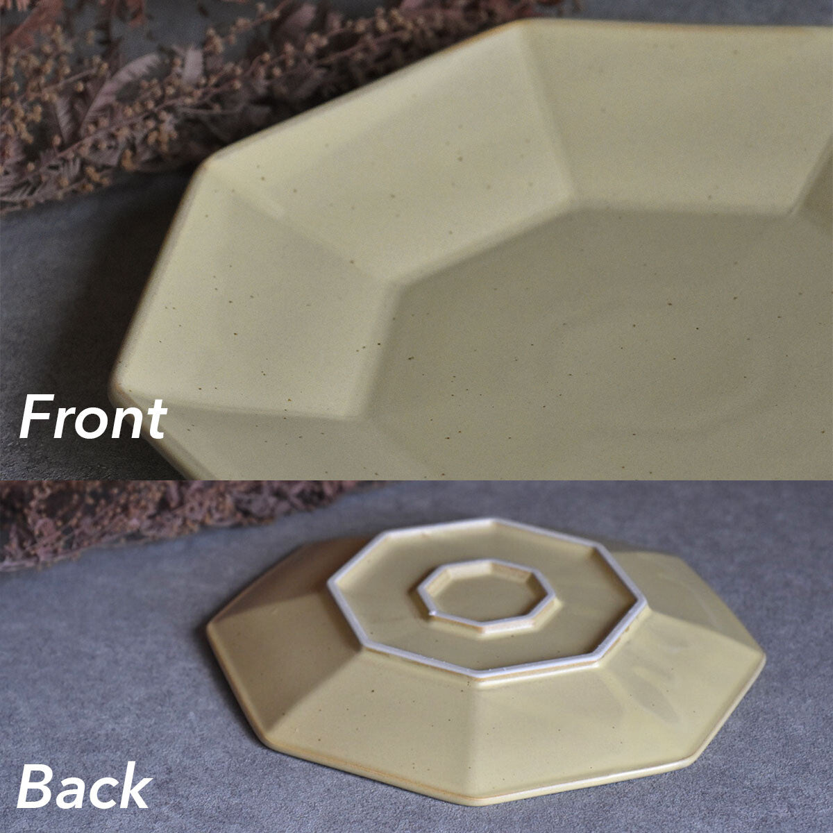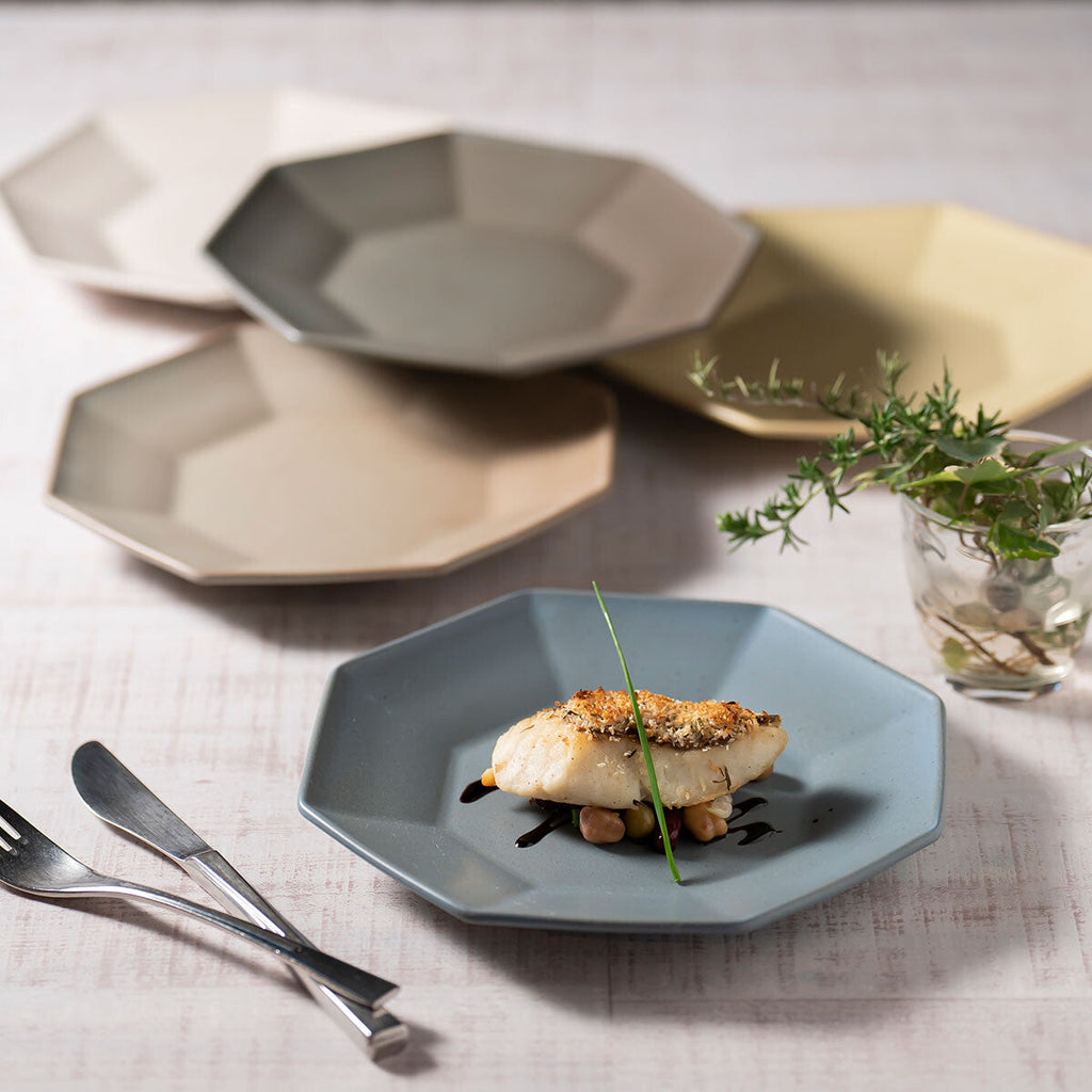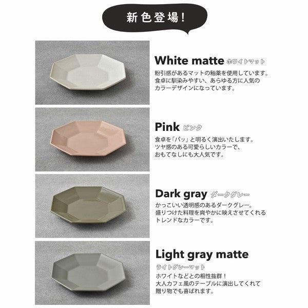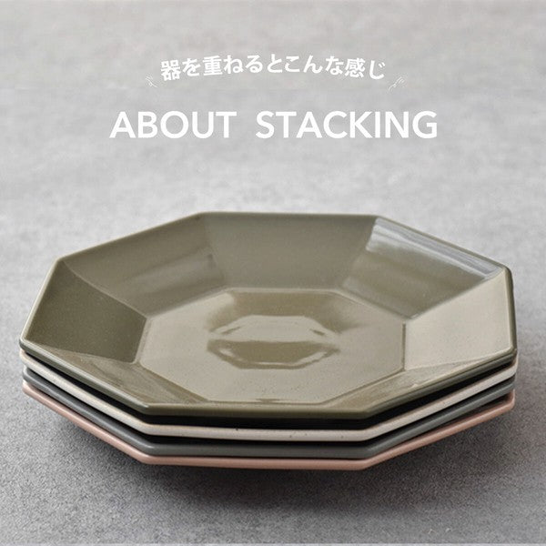This Mino ware large plate has a modern and refreshing design. The octagonal shape and gentle earth color tone make it a stylish addition to your dishes. It is lightweight, stackable and easy to use. The 8.5" size is suitable for serving meats and main dishes. There are various beautiful color options, which outline a soft and peaceful aesthetic feeling, making the dining table comfortable and elegant.