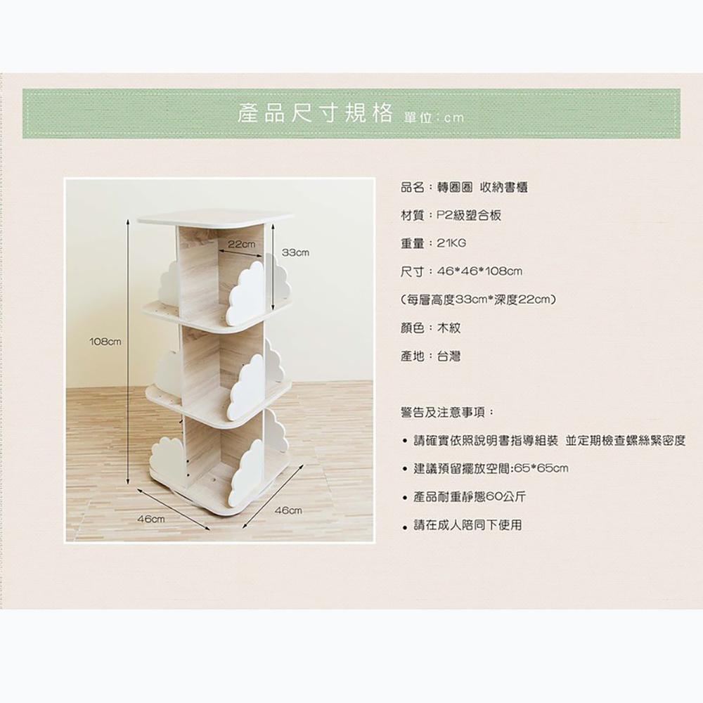 - 360度自由旋轉,好拿好收納,(不像其他標榜一層可以放很多書的設計,往往書太多太重,小小孩很難自行抽取書。