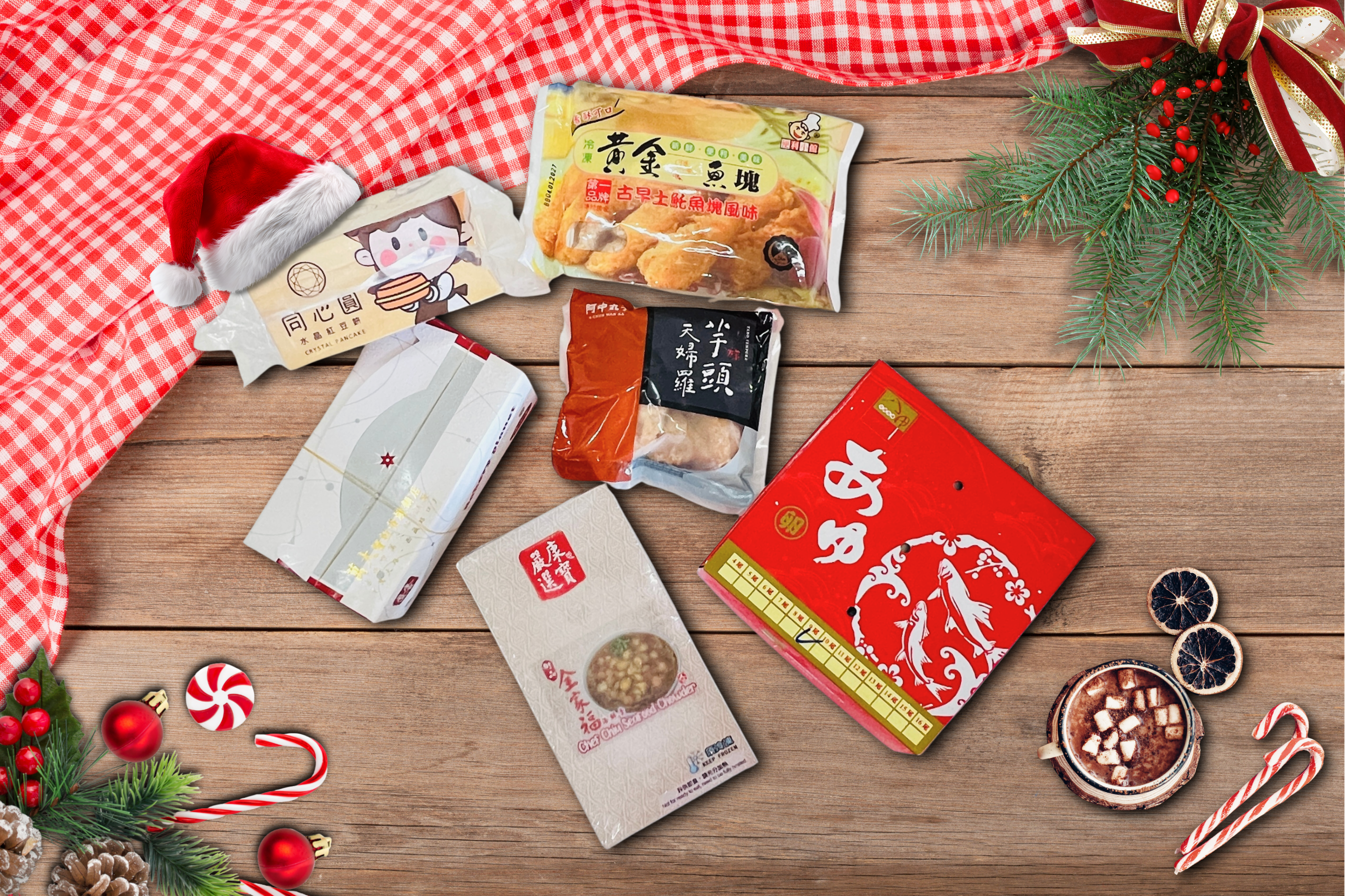 🎀Holiday Box -1 爆卵母香魚, 萬大蟹殼黃, 全家福海鮮羹, 黃金土魠魚塊, 同心圓相思奶油組合, 芋頭天婦羅