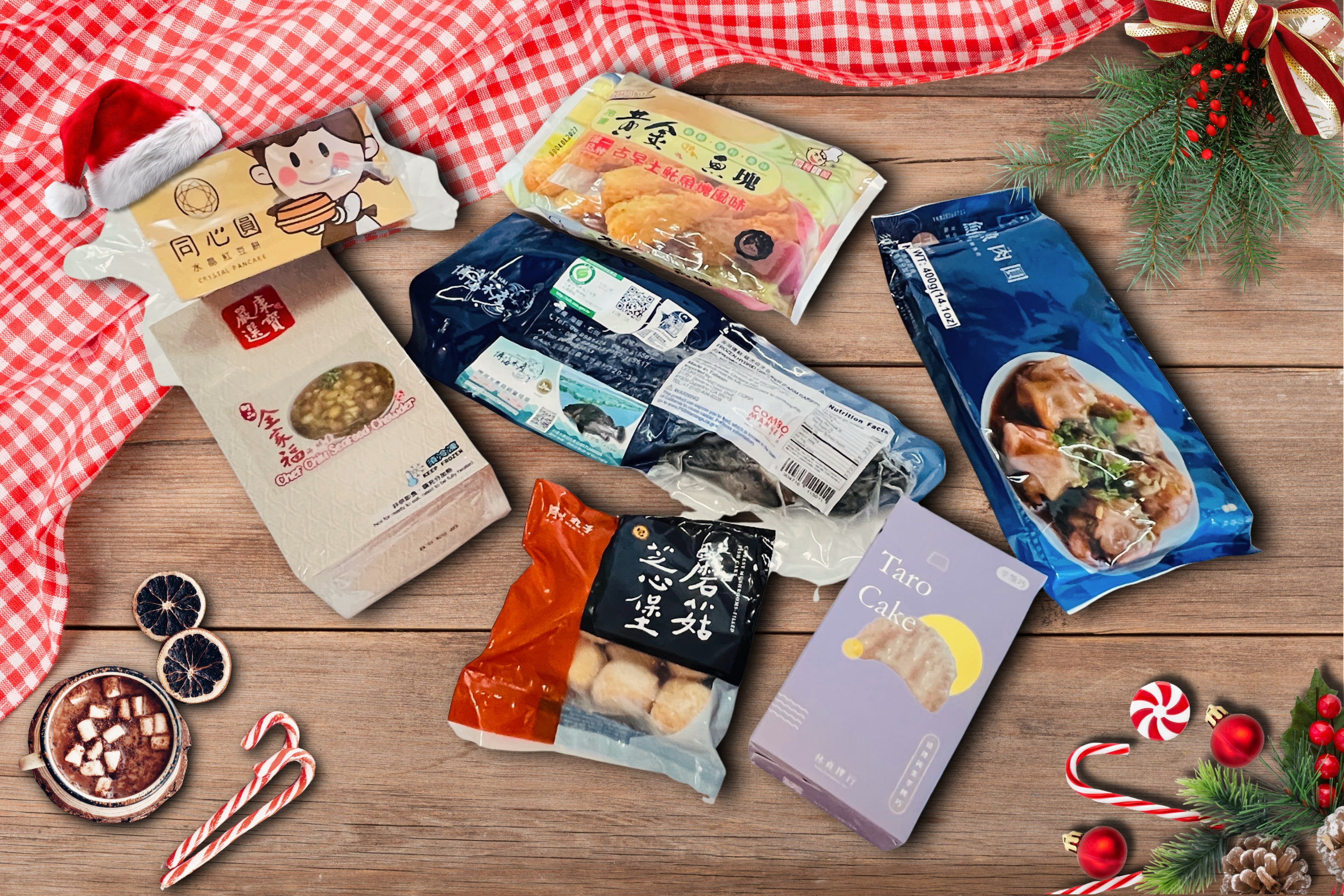🎀Holiday Box - 4 全家福海鮮羹, 龍虎斑全魚, 黃金土魠魚塊, 蘑菇芝心堡, 鮪魚肉圓, 同心圓紅豆奶油組合, 芋粿巧